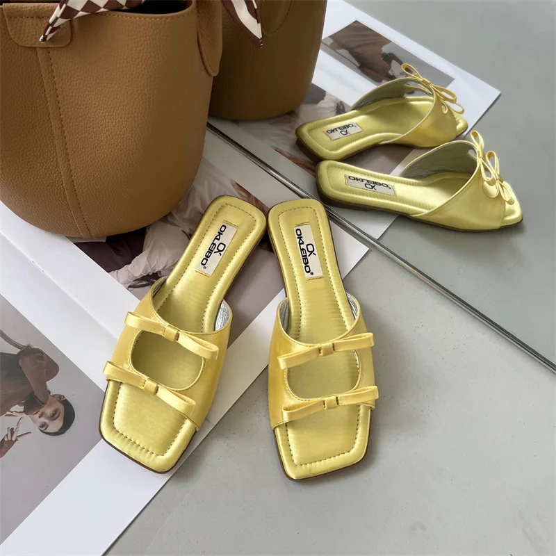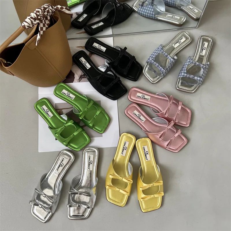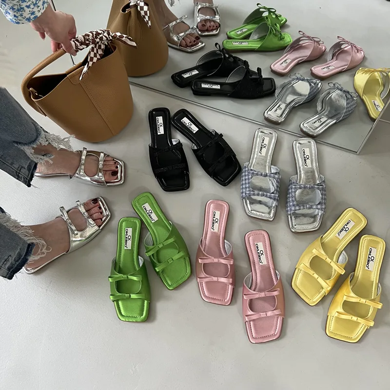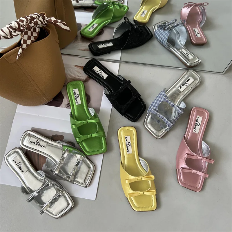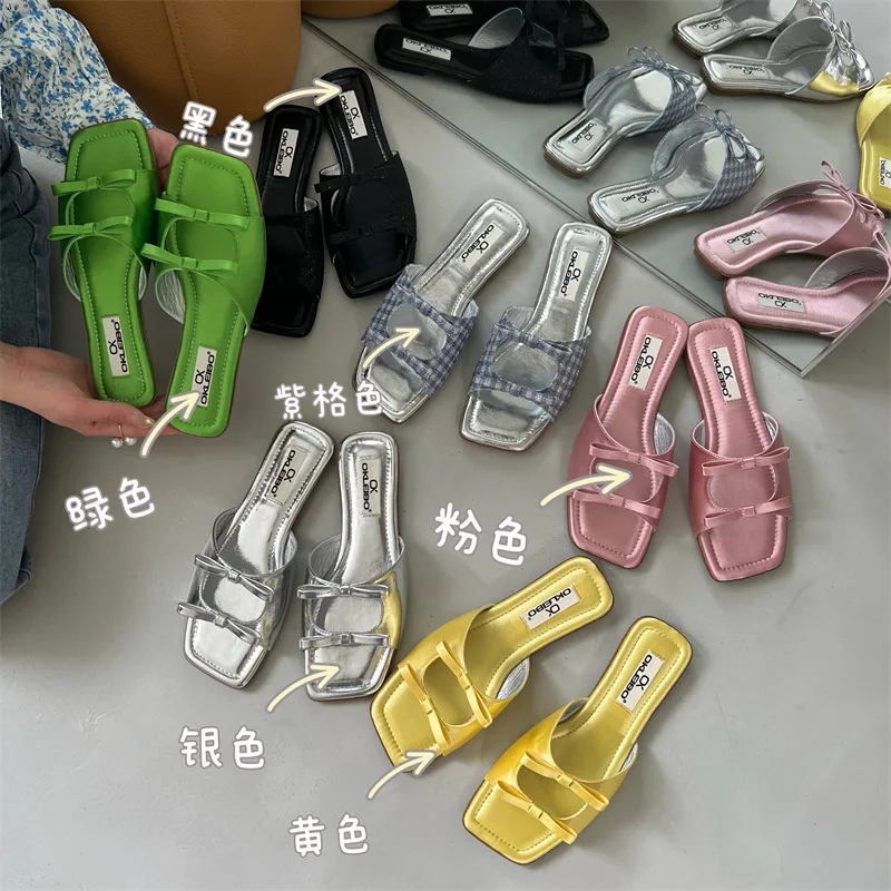 Summer Candy Leather Beach Shoes Women Bow Flat Slippers Women's Shoes Simple Slides Open Toe Flat Slippers for Women J685hmqViviiyNSAyin6WuaTt8tzuI/sAjKx3qRJ