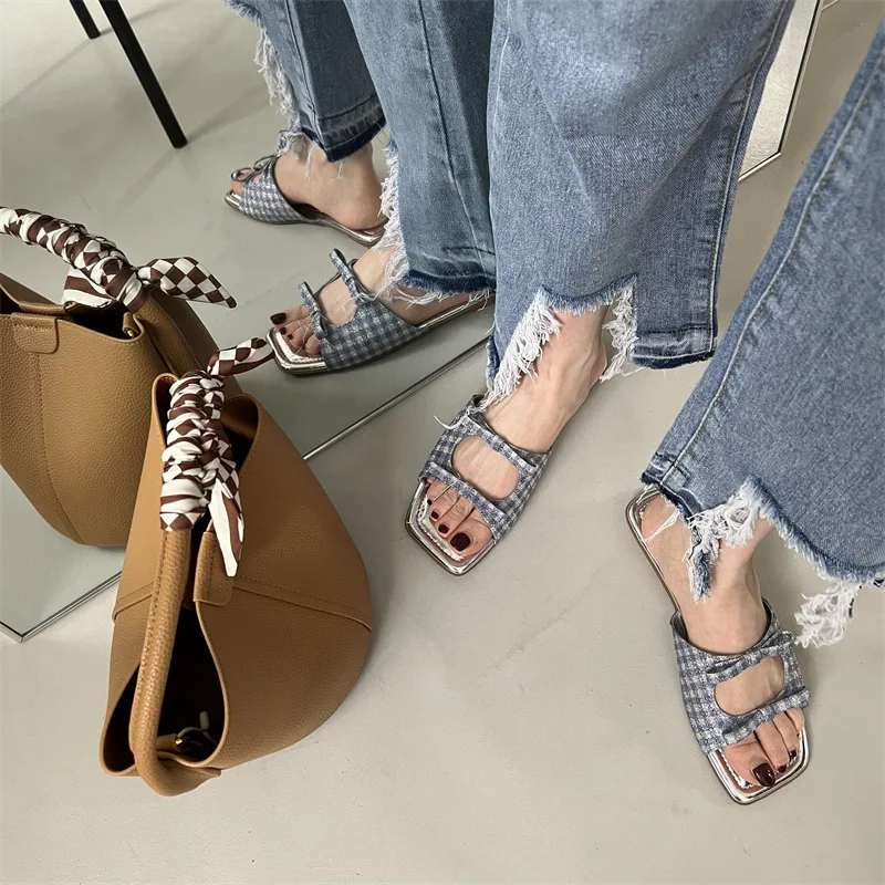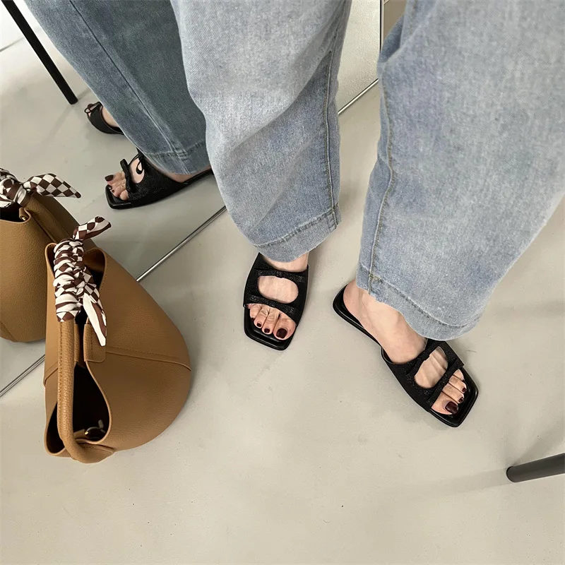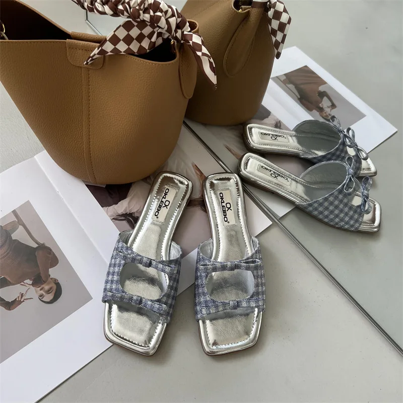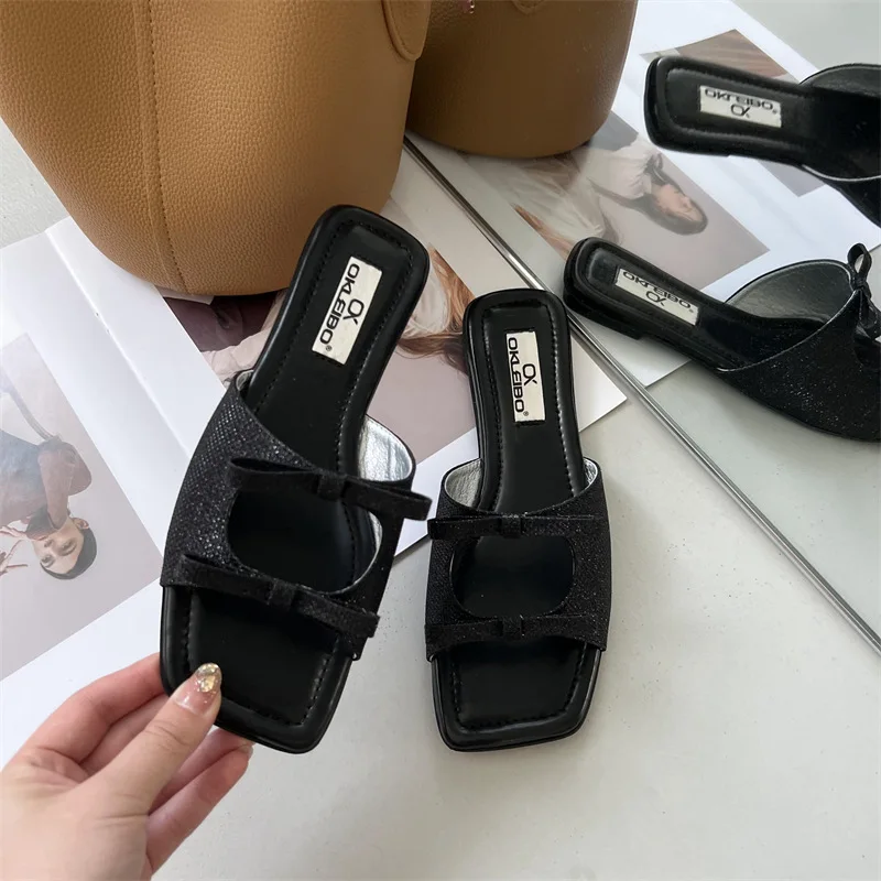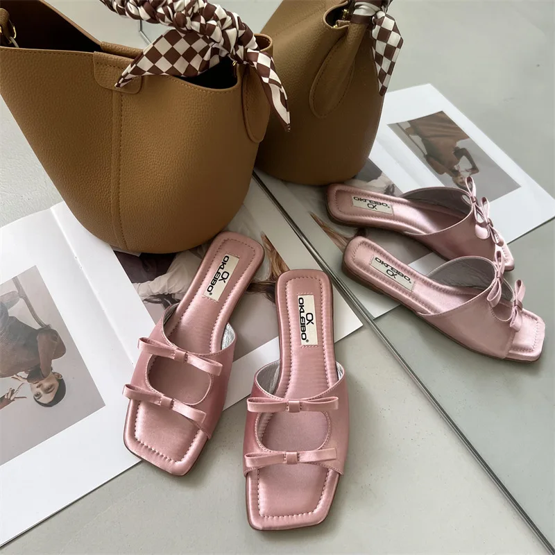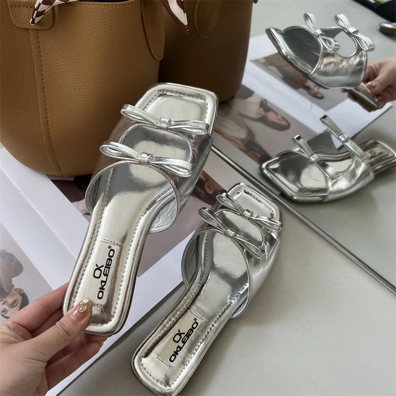 Summer Candy Leather Beach Shoes Women Bow Flat Slippers Women's Shoes Simple Slides Open Toe Flat Slippers for Women J685hmqViviiyNSAyin6WuaTt8tzuI/sAjKx3qRJ