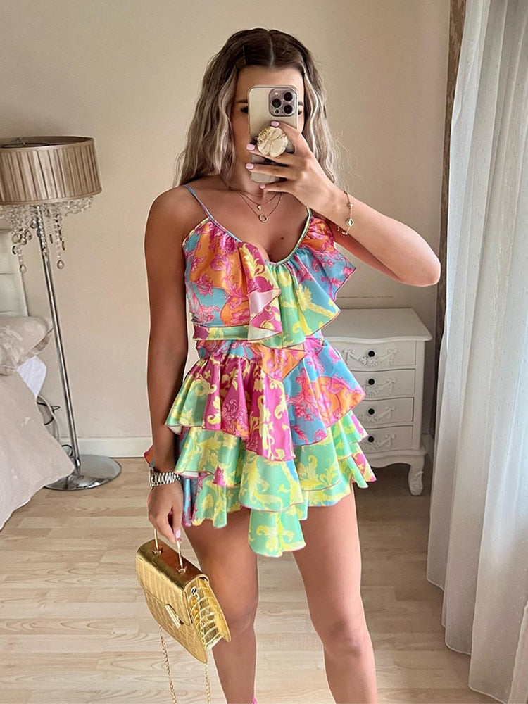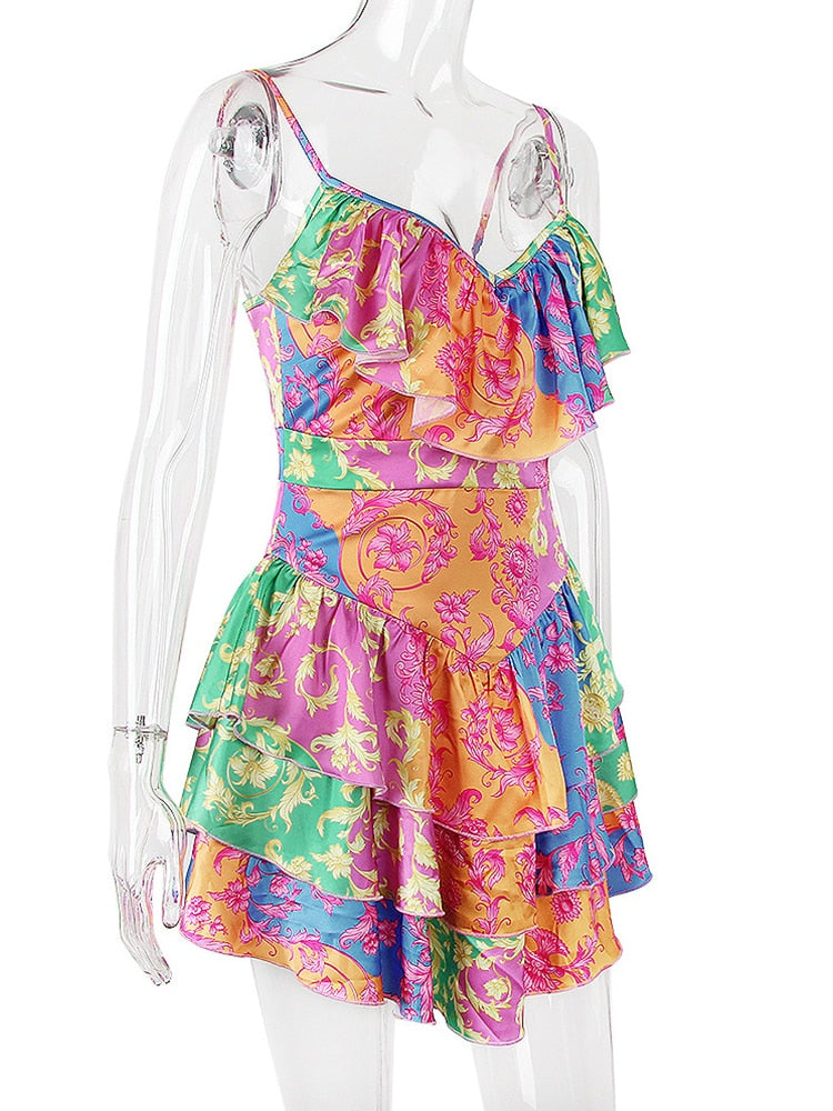 Hulianfu Summer Floral Print Dress Women Party Dress New Arrival Elegant Ruffle Dress Mini Slip Dress Backless Sexy Club Beach Dress