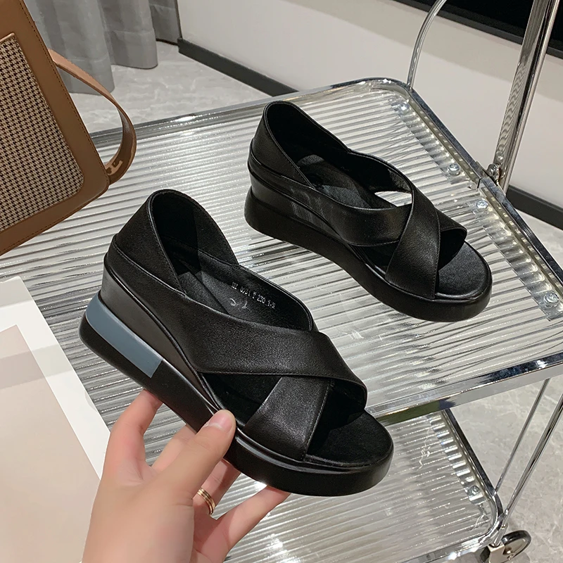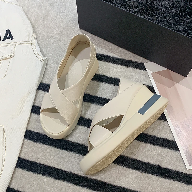 Summer Wedges Platform Sandals Women Fashion Hollow Out Thick Bottom Beach Shoes Woman New Non-slip Slip on Sandalias