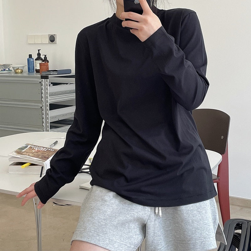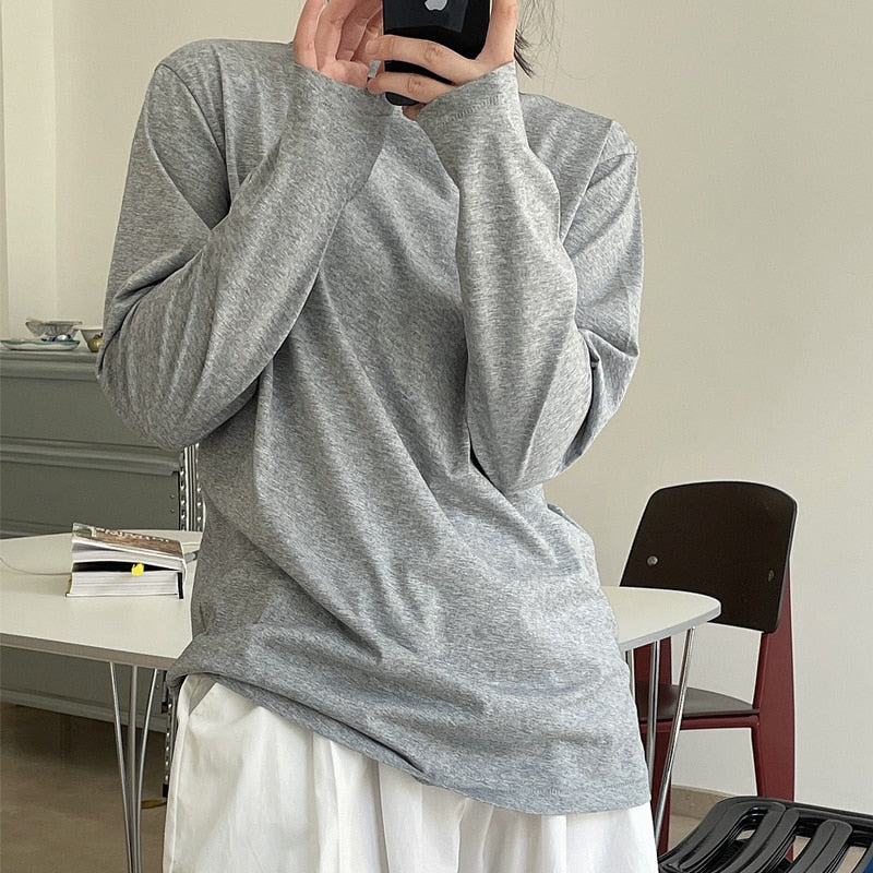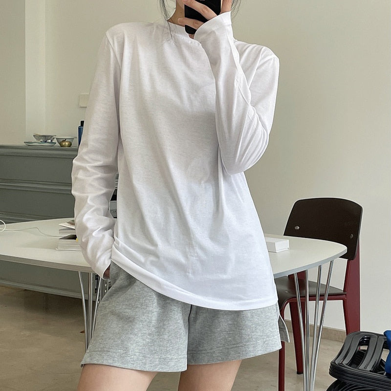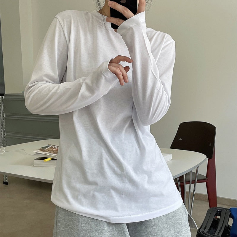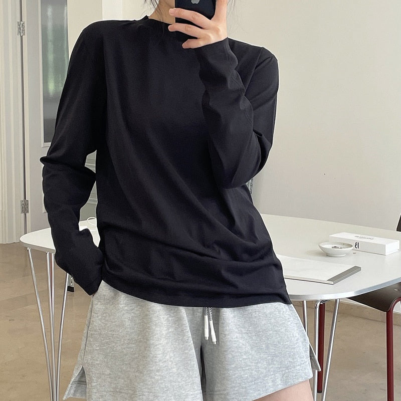 Hulianfu Summer Women's Casual Solid Color Round Neck Long Sleeve Loose T-Shirt
