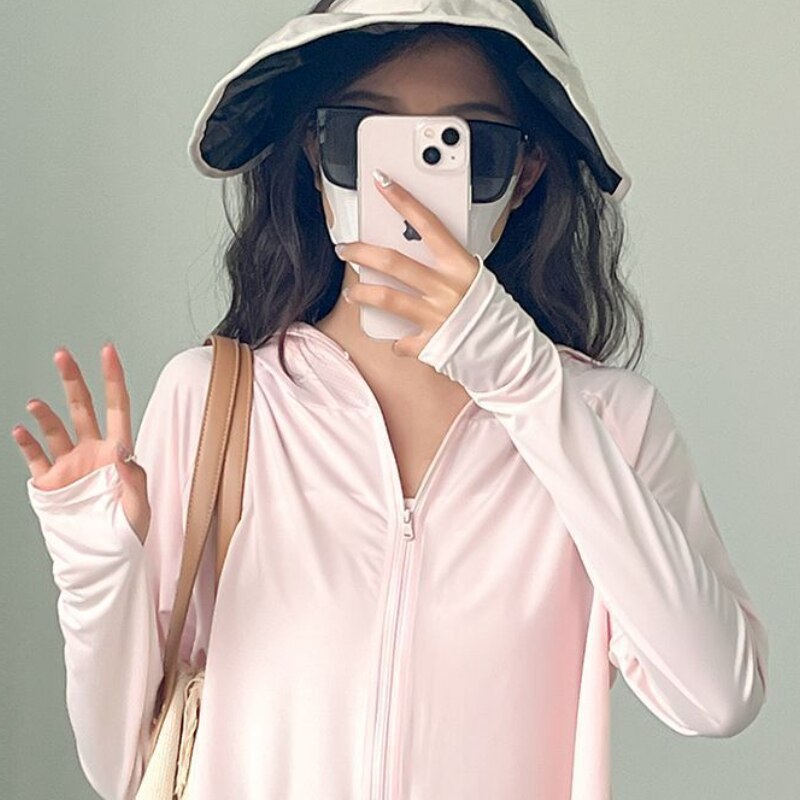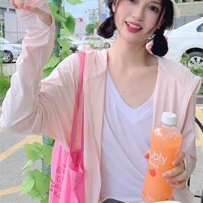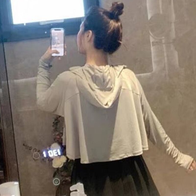 Sun-proof Jackets Women Hooded Casual Summer Fashion Thin Chic Loose Sporty Korean Style 6 Colors All-match Breathable Simple