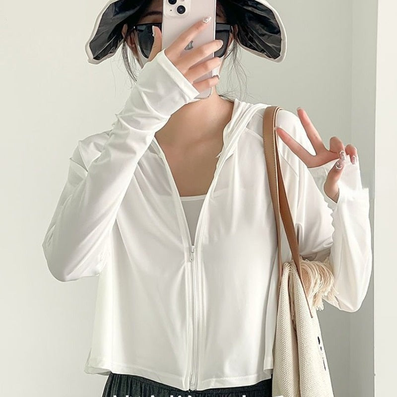 Hulianfu Sun-proof Jackets Women Hooded Casual Summer Fashion Thin Chic Loose Sporty Korean Style 6 Colors All-match Breathable Simple