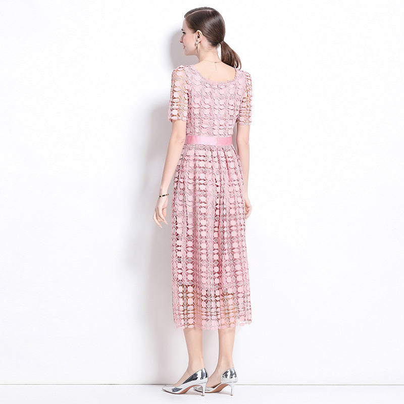 Temperament court style first love skirt square collar hollow lace waist thin dress women popular skirt women summer