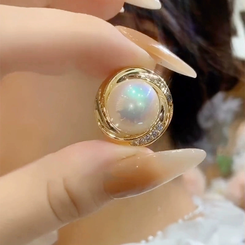Temperament High-class sense Diamond-encrusted pearl pure silver needle earrings new trendy light luxury versatile ear buckle atmospheric earrings
