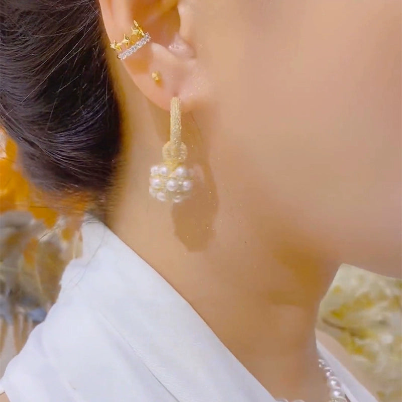 Temperament high sense full of diamonds pearl ball earrings celebrity light luxury earrings women's diamond silver needle stud earrings new