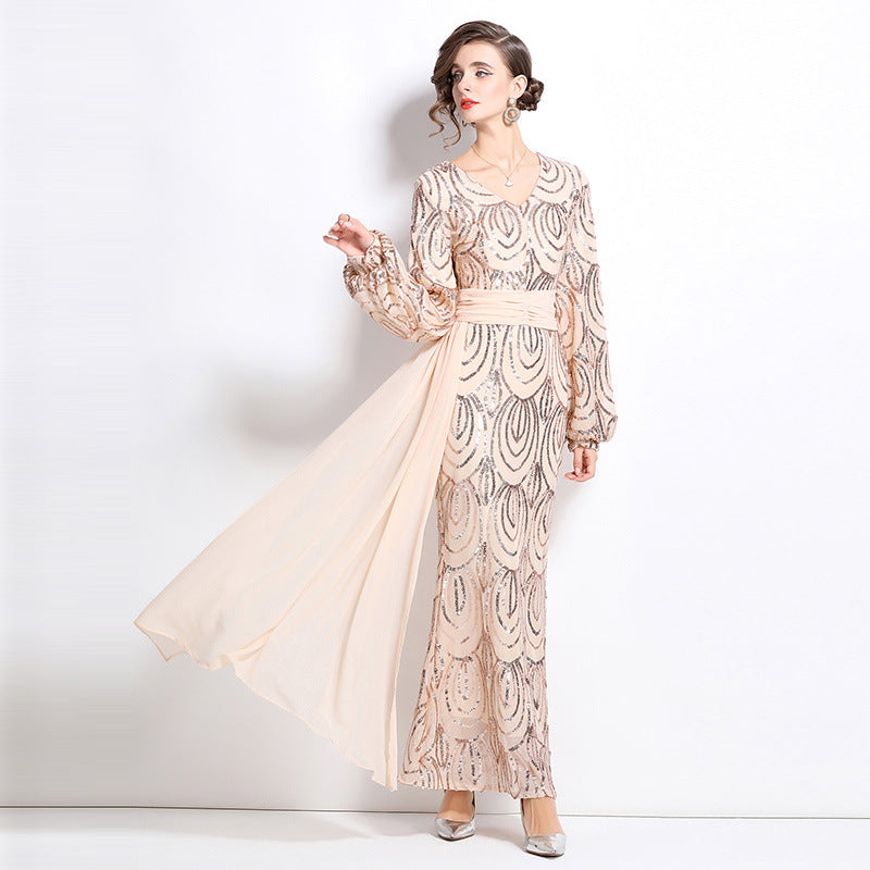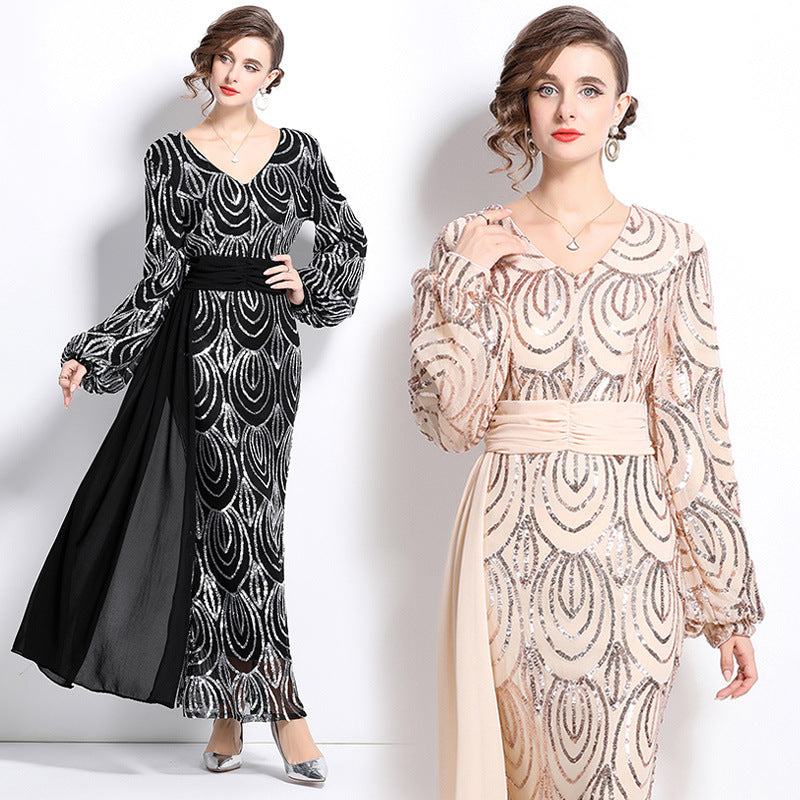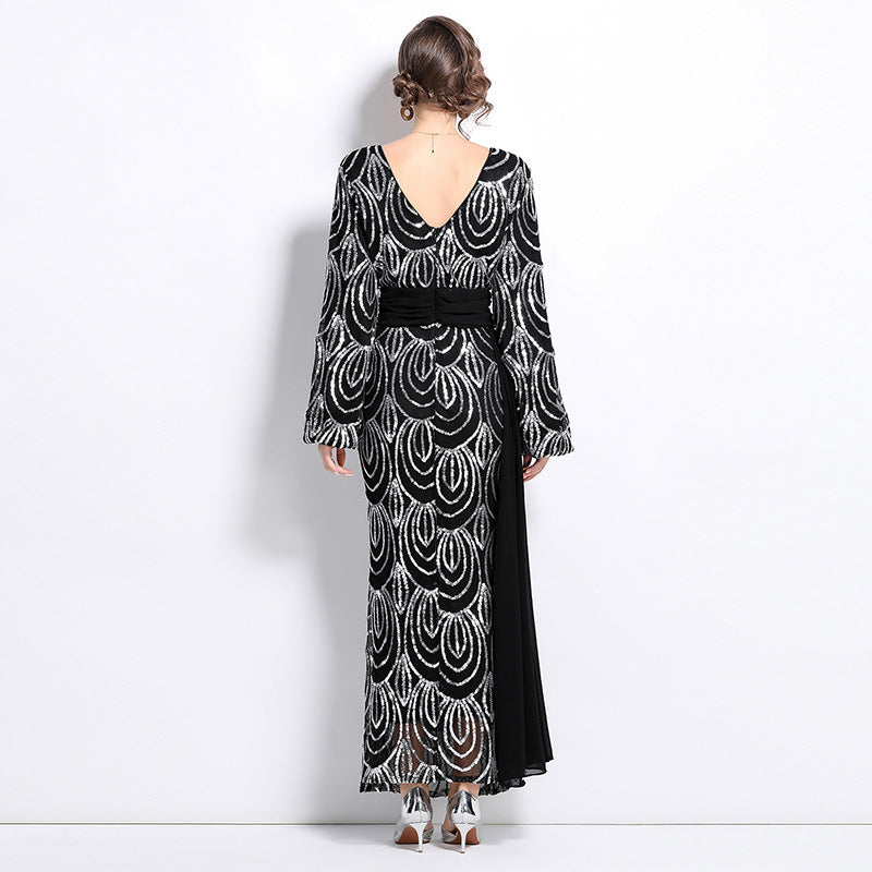temperament socialite style sequined dress women's autumn and winter new waist thin long sleeve fishtail dress skirt