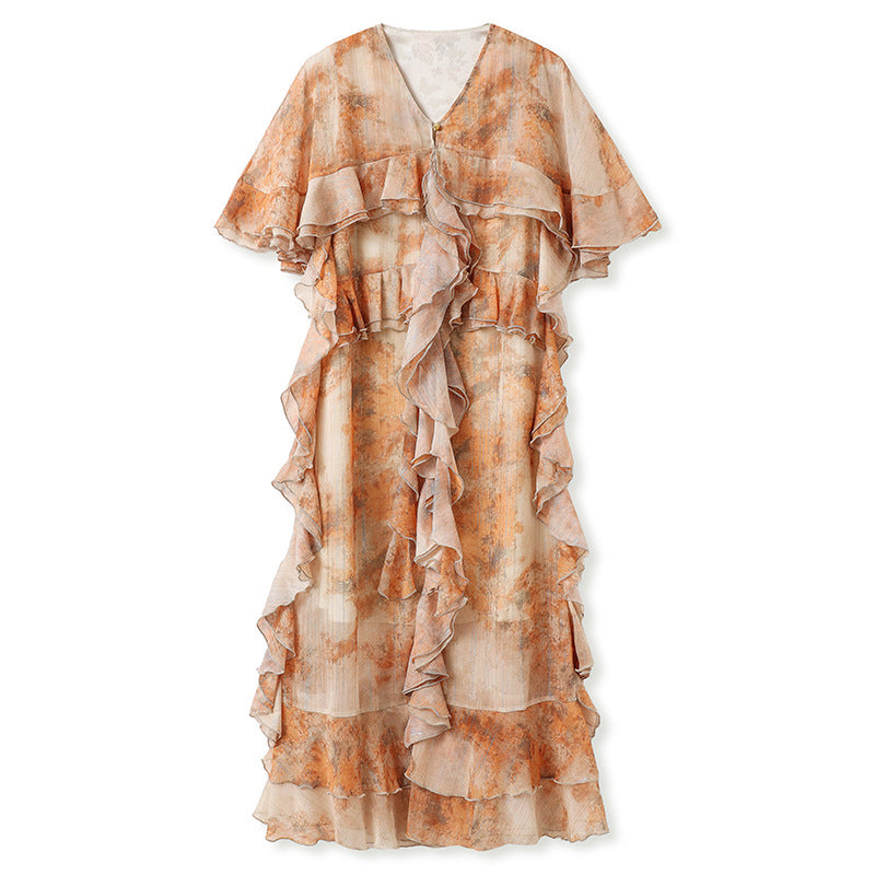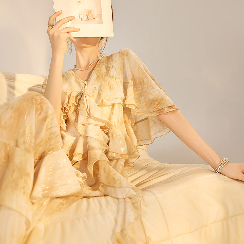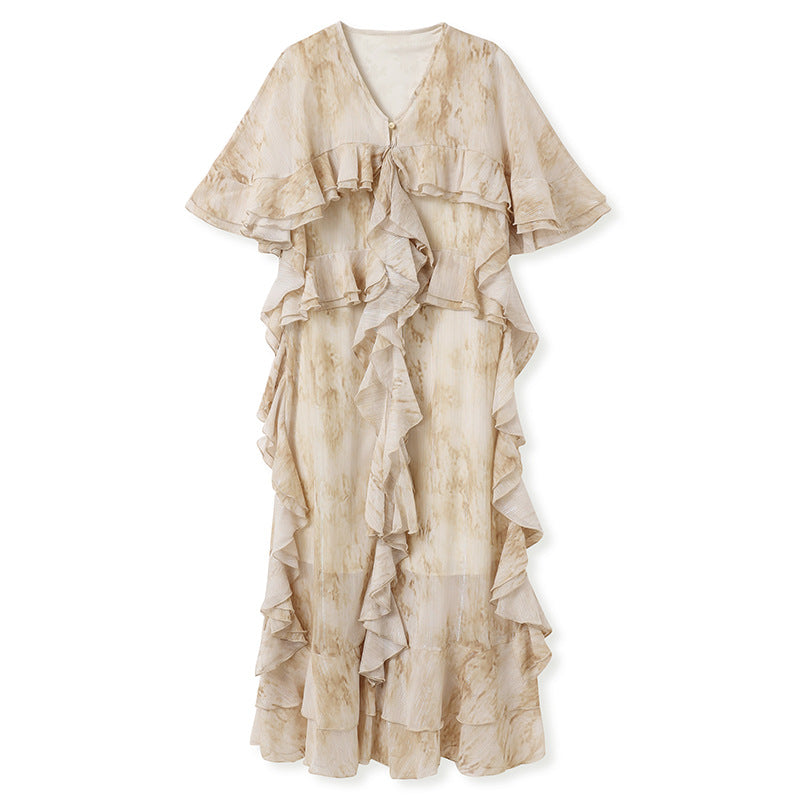 The national style is beautiful, high-end lotus leaf edge smudged fairy long dress, female summer new Chinese light luxury dress N3053
