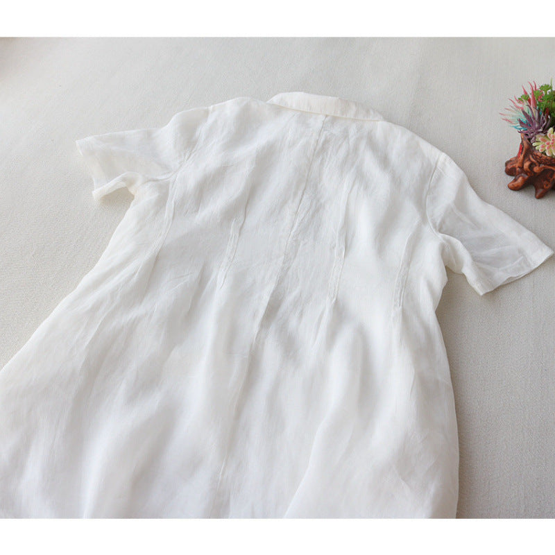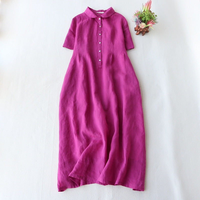 The original order for Popular trade export to Japan summer waist polo collar short-sleeved dress women's literary cotton and linen long skirt