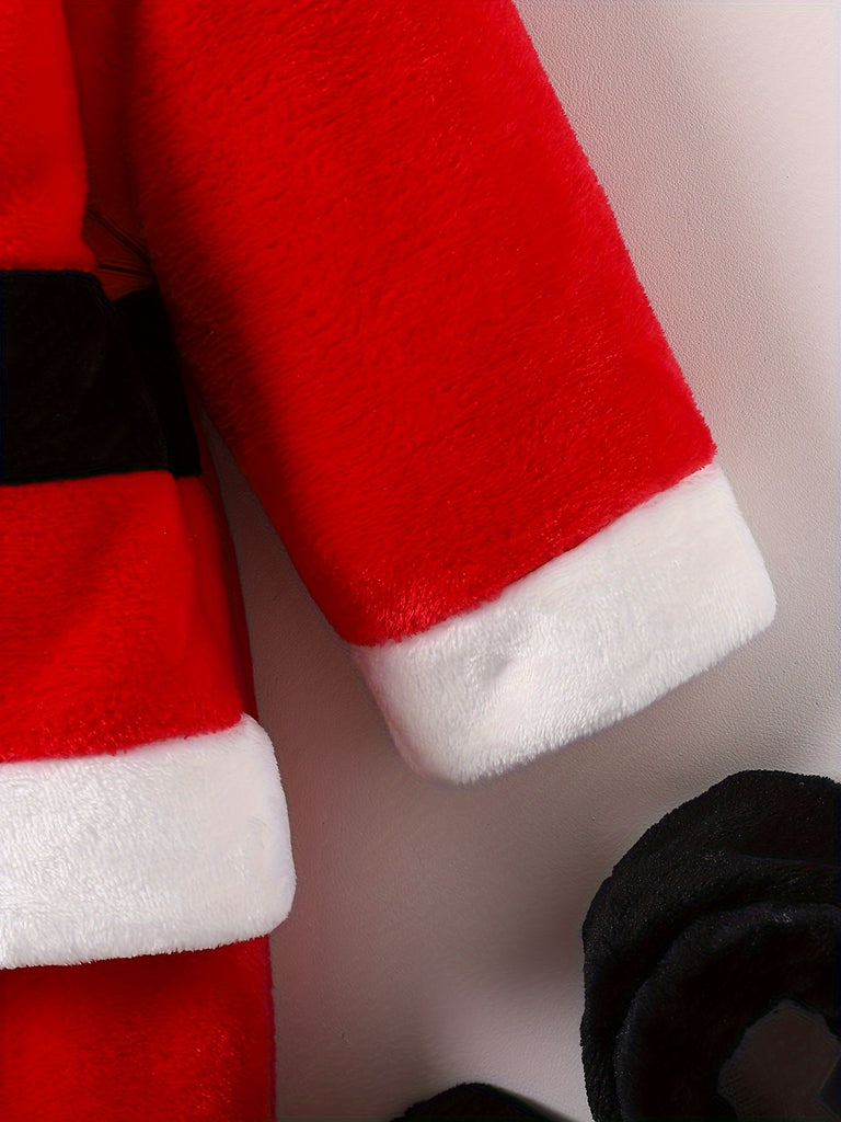 Tolo Rabbit Toddler Christmas Santa Claus Costume Set with Hat - Crew Neck, Long Sleeve, Polyester Knit Fabric, Solid Color, Loose Fit, Slight Stretch, Cute Style, for Ages 0-12 Months