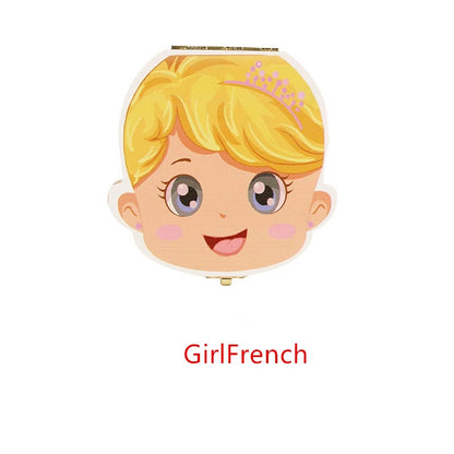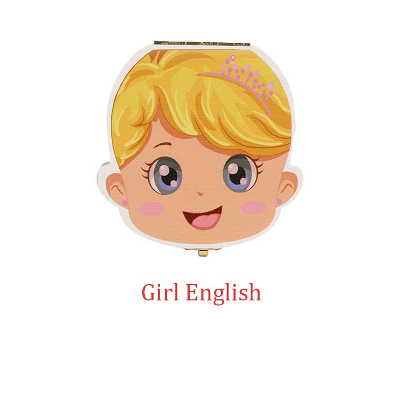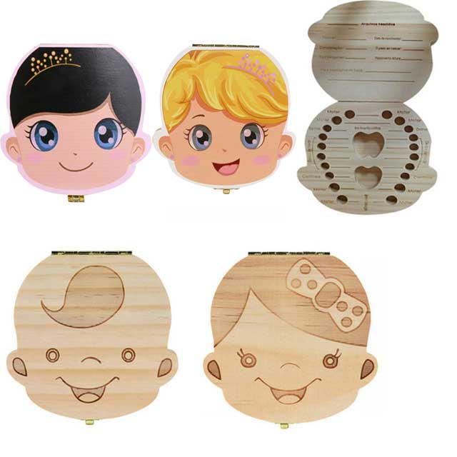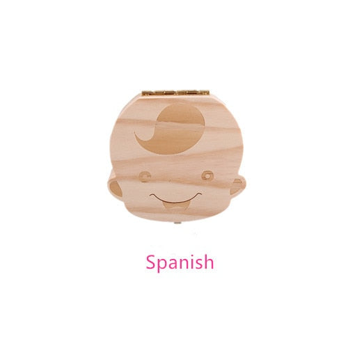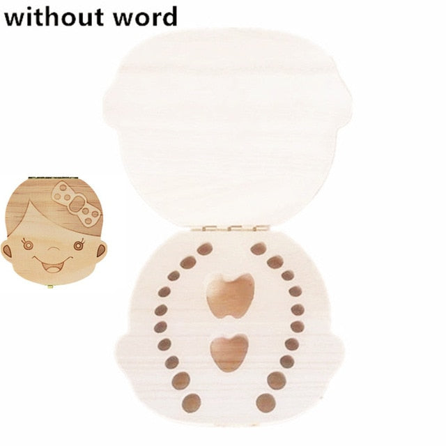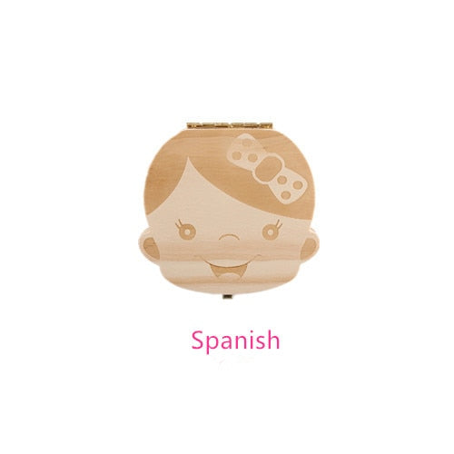 Fallen Tooth Box StoragePoland Dutch Portugal English Spanish Russian French GermanText Baby Boy Girl Wood Case Save Milk Teeth Organizer Holder