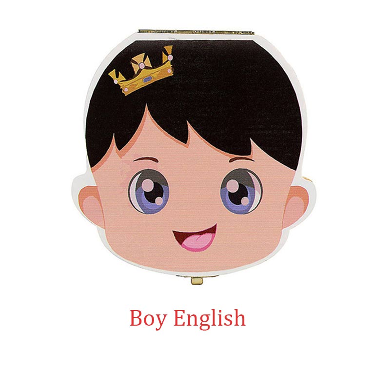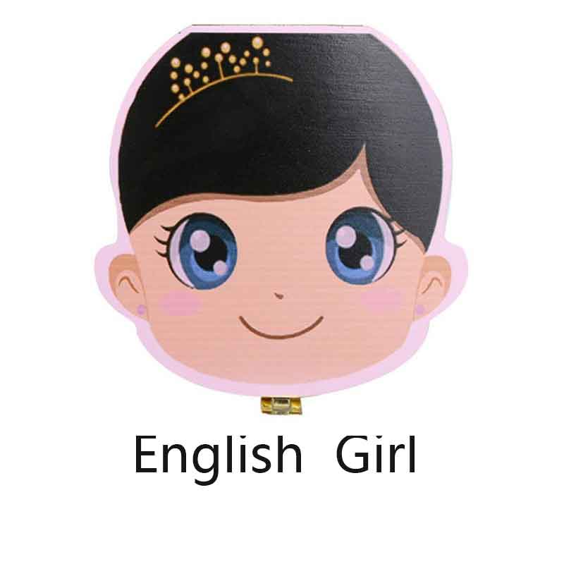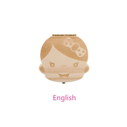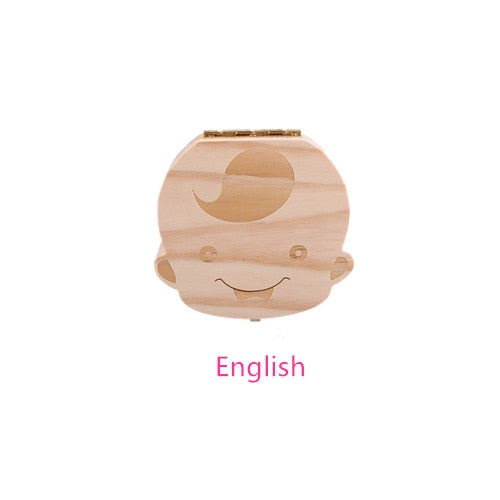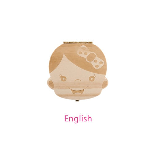 HULIANFU Tooth Box Poland English dutch Spanish Russian French GermanText Baby Boy Girl Wood Case Save Milk Teeth Organizer Holder