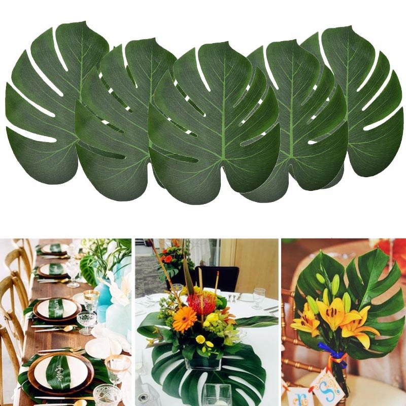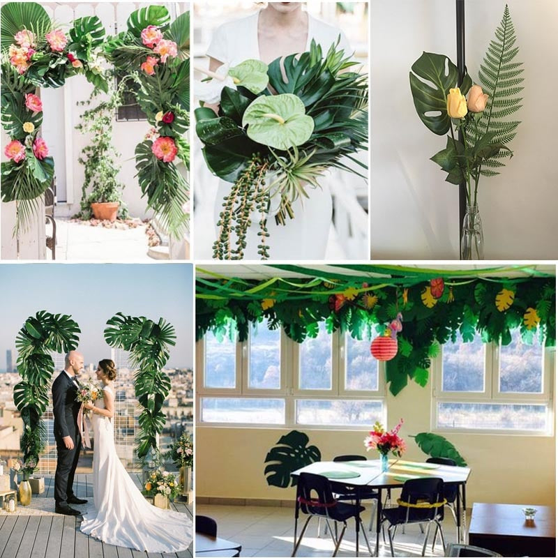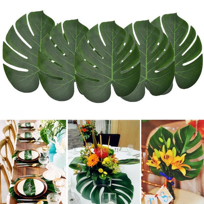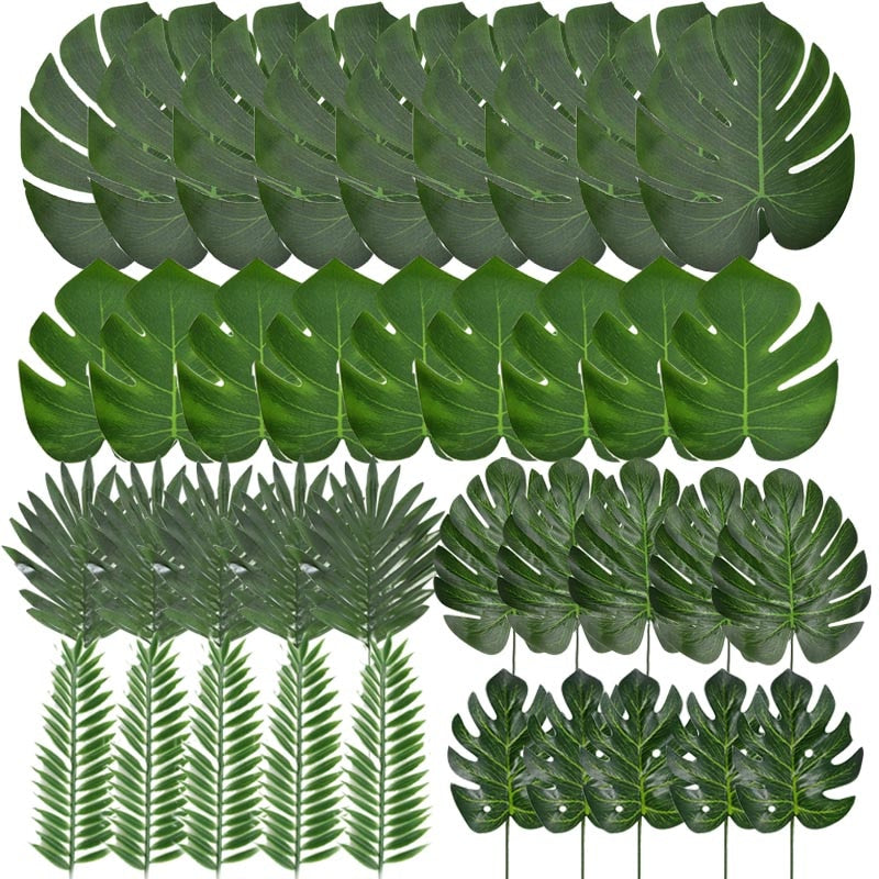 HULIANFU Tropical Palm Leaves Summer Monstera Artificial Silk Turtle Leaves For Home Hawaiian Luau Beach Wedding Party Decor Fake Plants