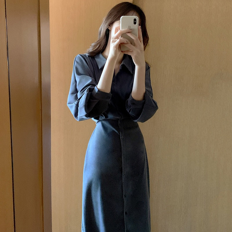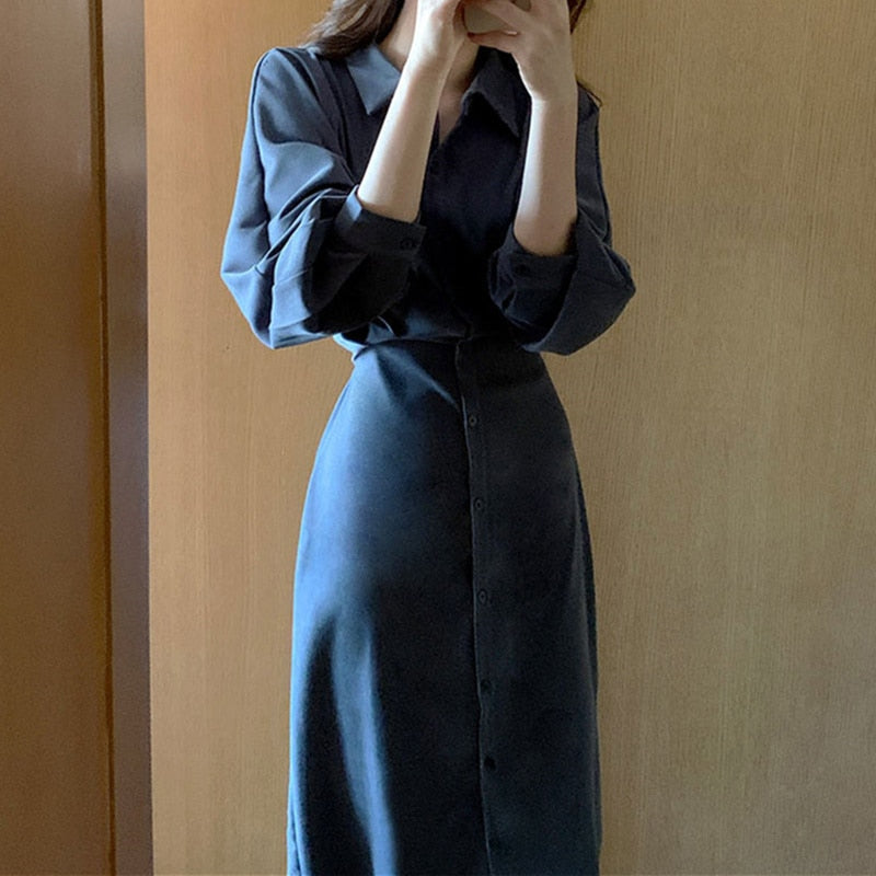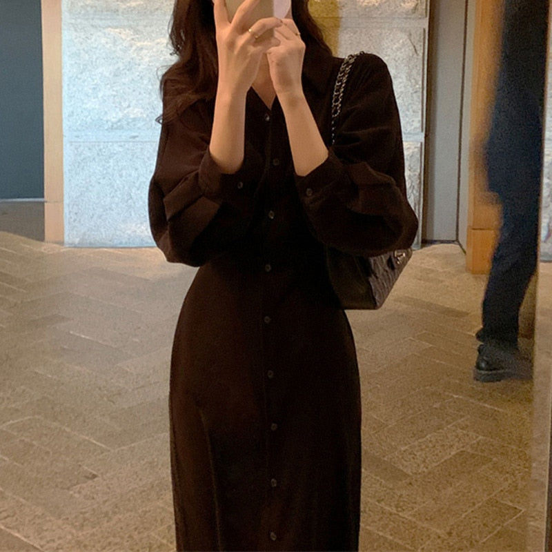 Hulianfu Vintage Evening Shirt Dresses for Women Party Fashion High Waist Korean Lace Up Long Woman Dress Elegant Autumn 2023 Vestidos