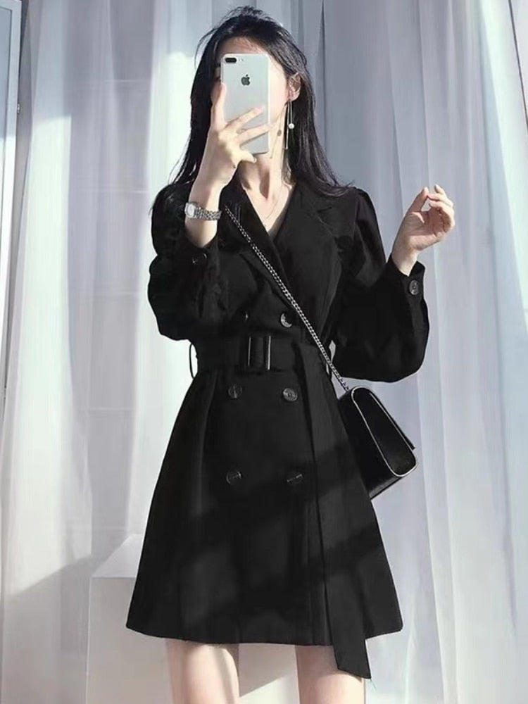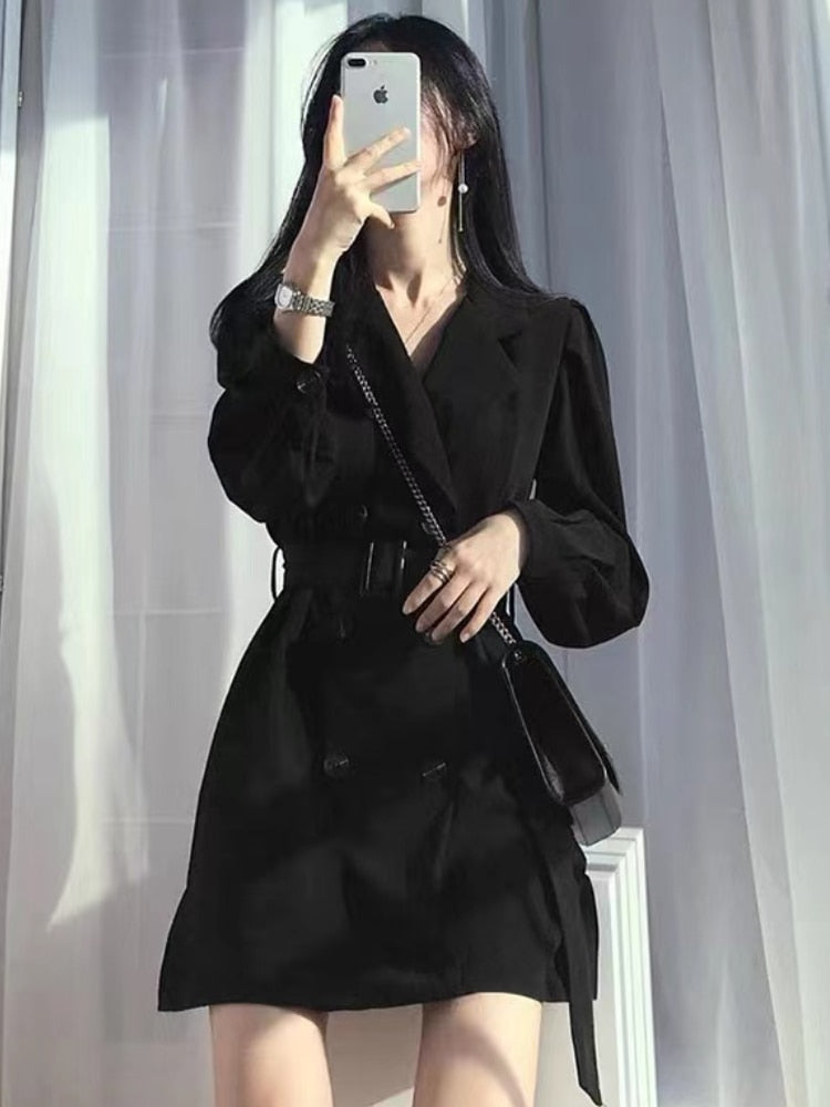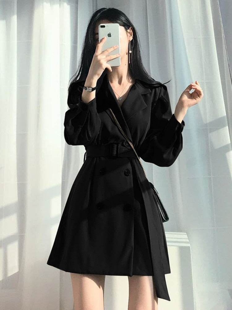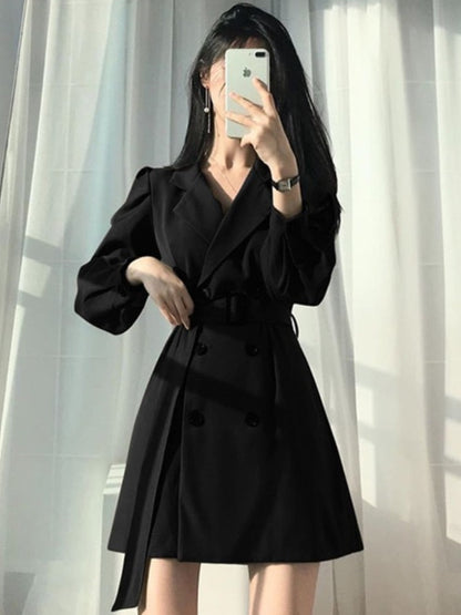 Vintage Notched Black Long Sleeve Jacket Slim Blazer Mini Dresses for Women Korean Fashion Sexy Casual Bodycon Dress Autumn