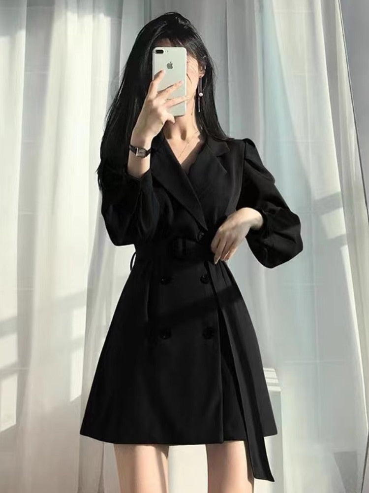 Hulianfu Vintage Notched Black Long Sleeve Jacket Slim Blazer Mini Dresses for Women Korean Fashion Sexy Casual Bodycon Dress Autumn