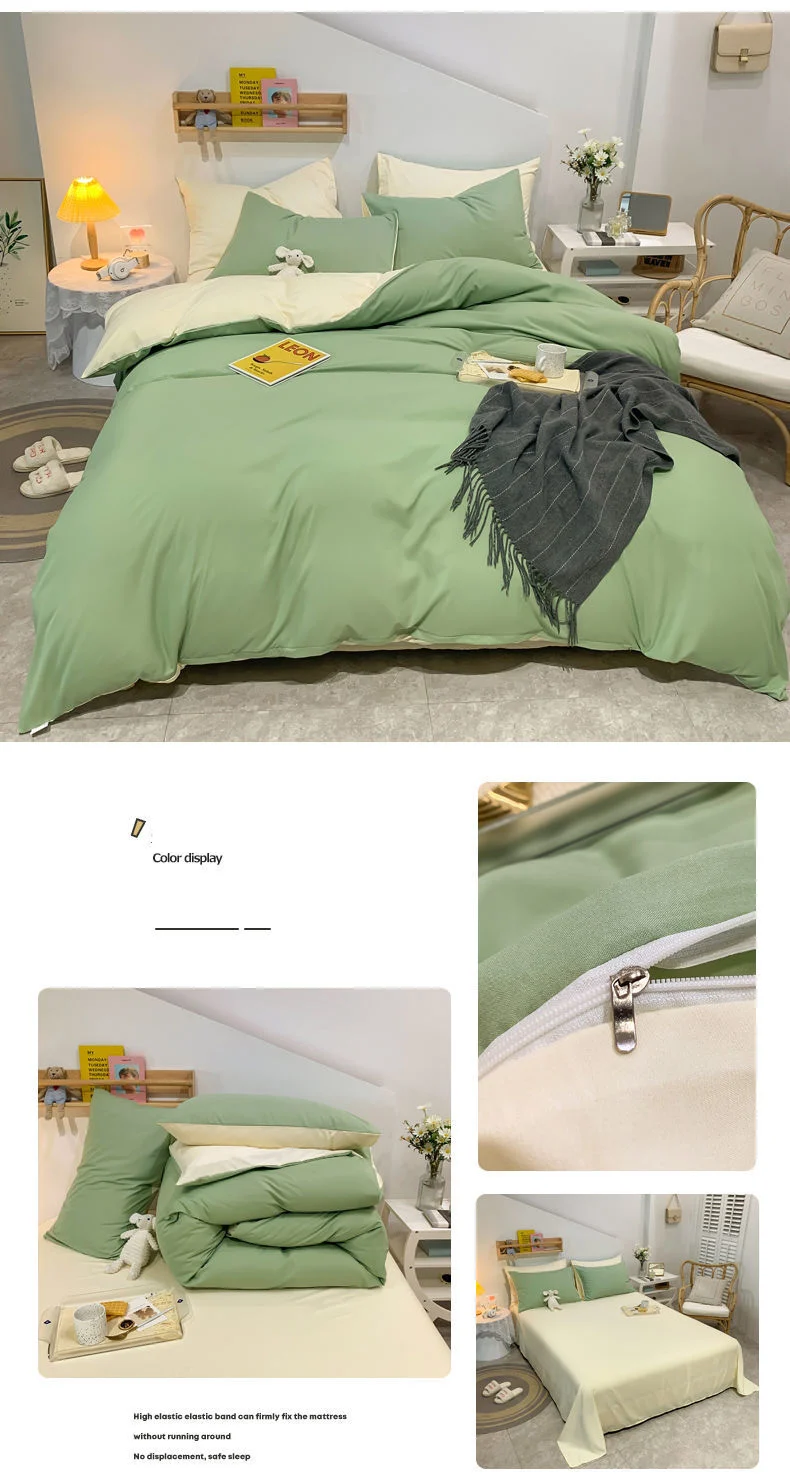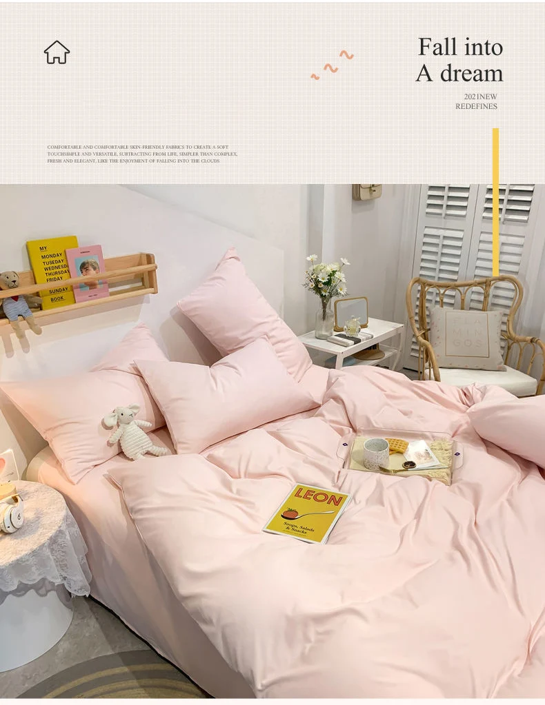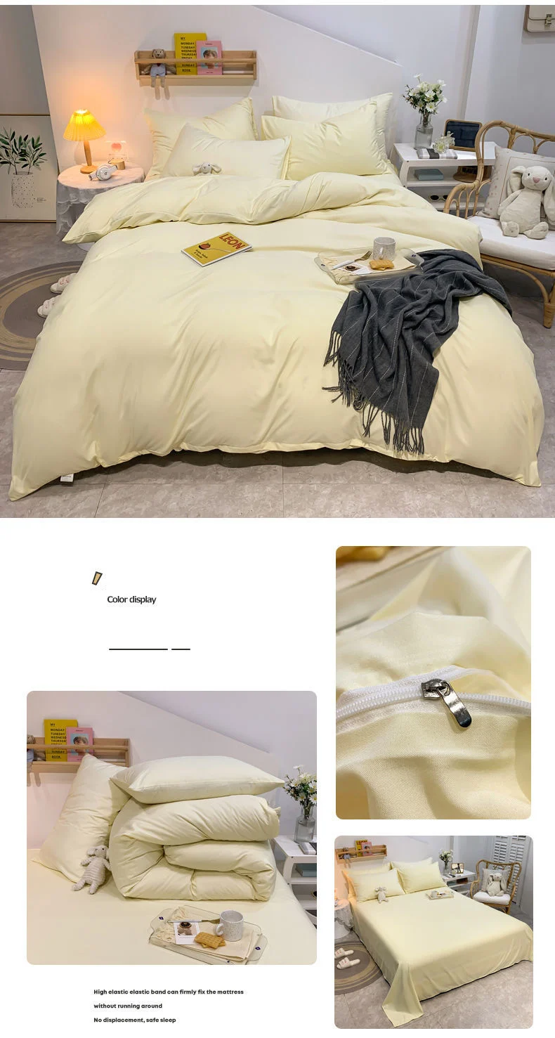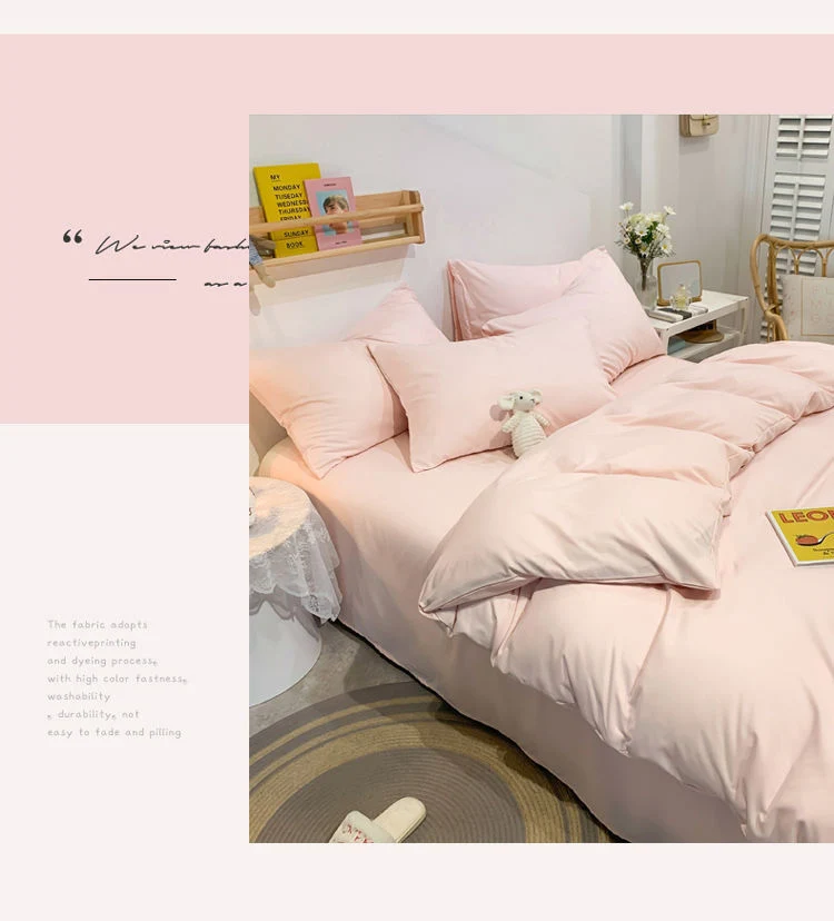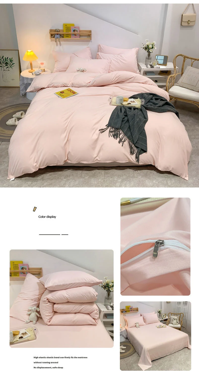 HULIANFU Washed cotton four-piece quilt cover sheet pillowcase bedding quilt soft solid color simple adult sanding three-piece bed sheet