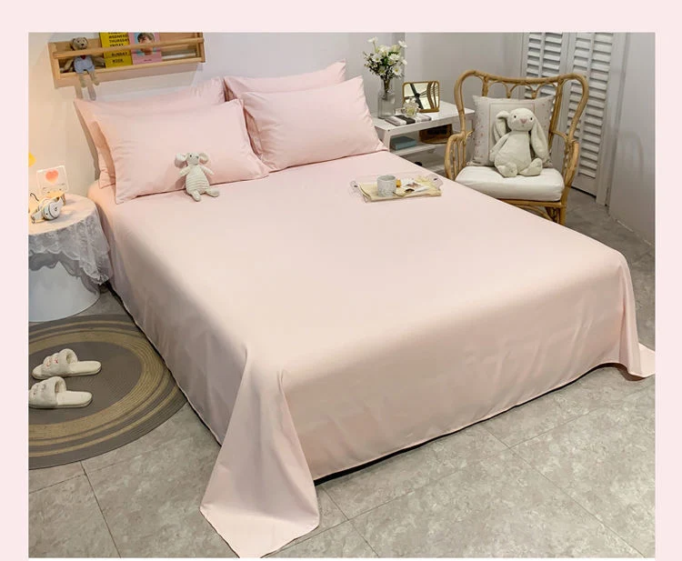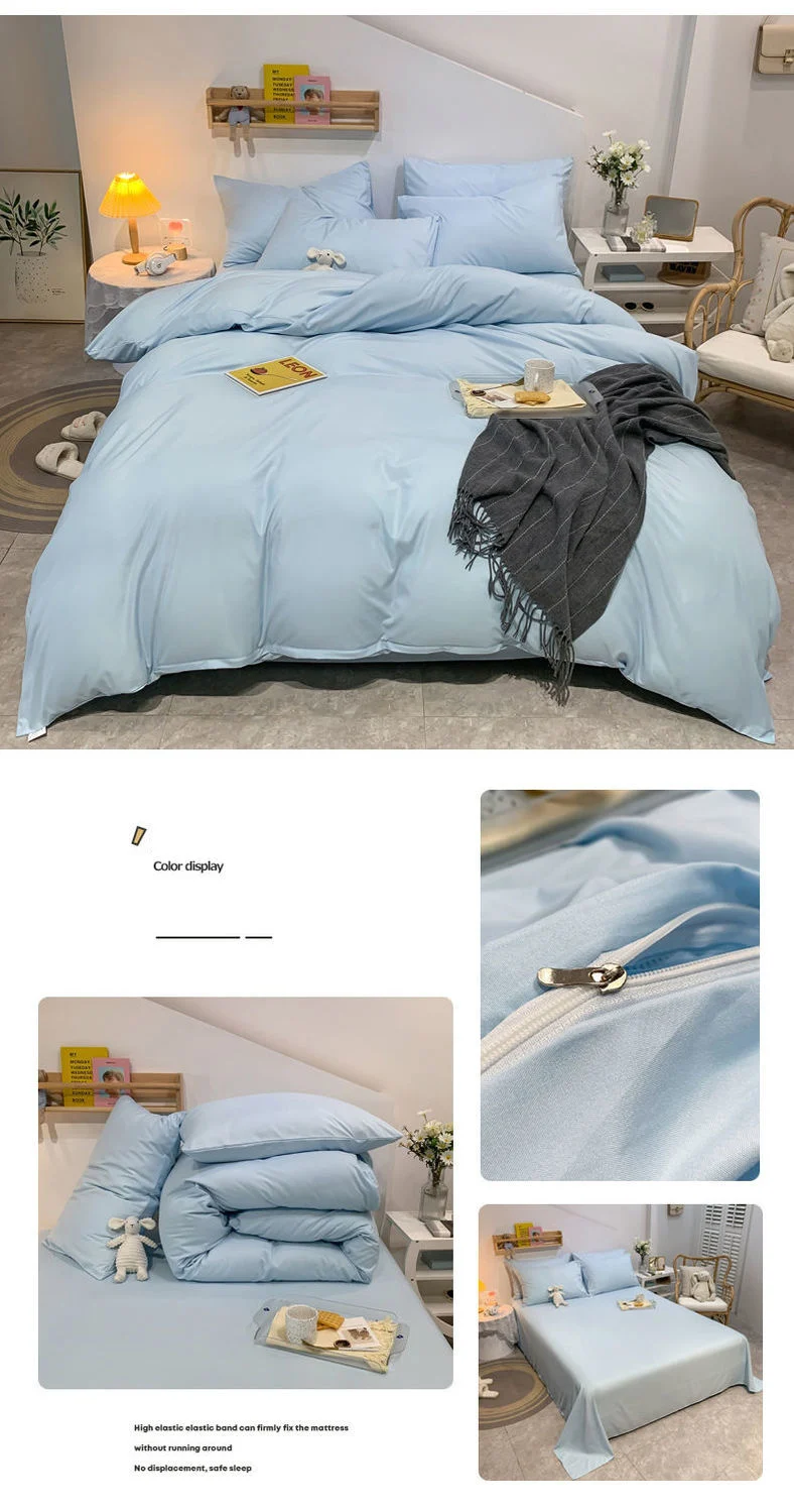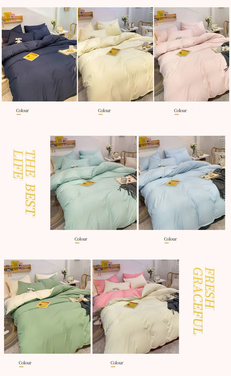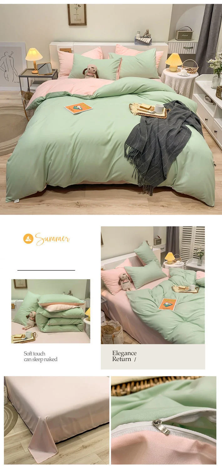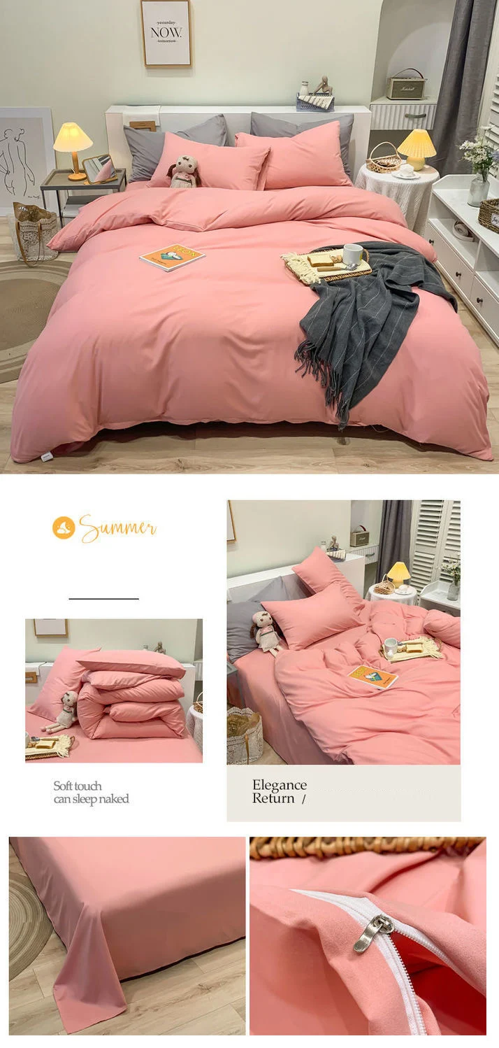HULIANFU Washed cotton four-piece quilt cover sheet pillowcase bedding quilt soft solid color simple adult sanding three-piece bed sheet