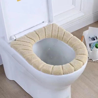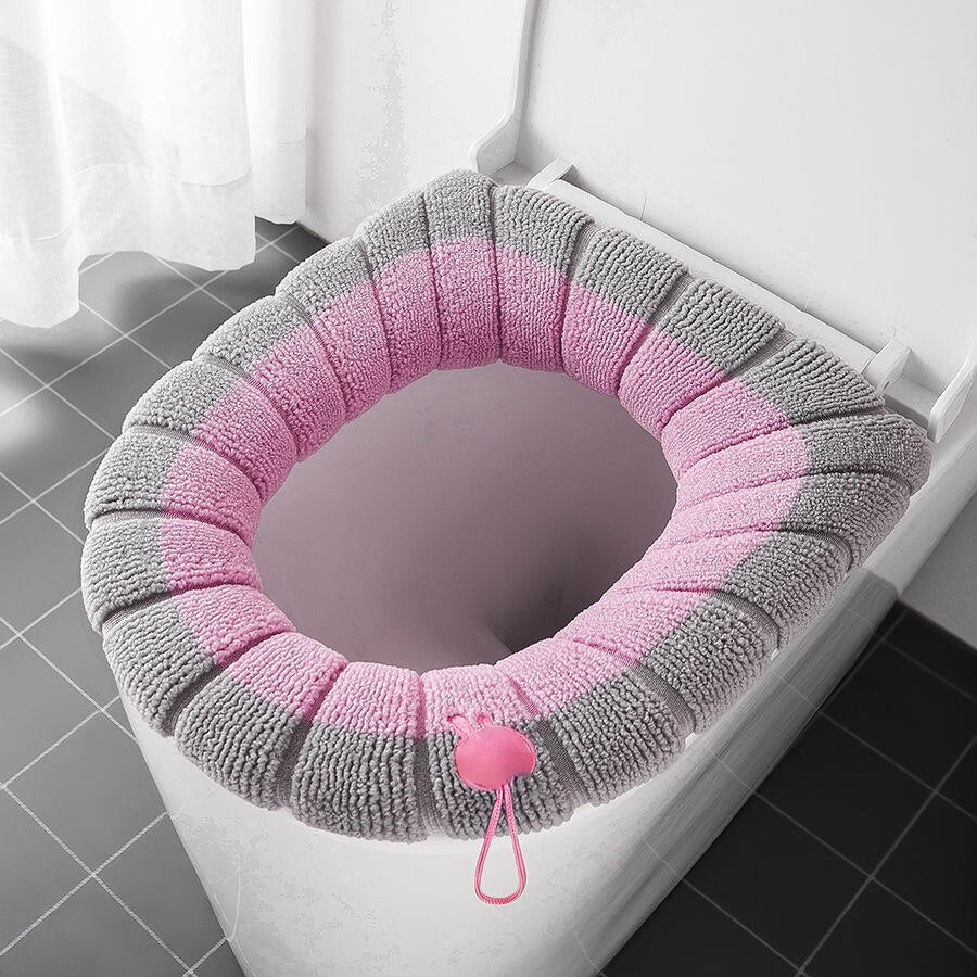 HULIANFU Winter Warm Toilet Seat Cover Closestool Mat 1Pcs Washable Bathroom Accessories Knitting Pure Color Soft O-shape Pad Bidet Cover