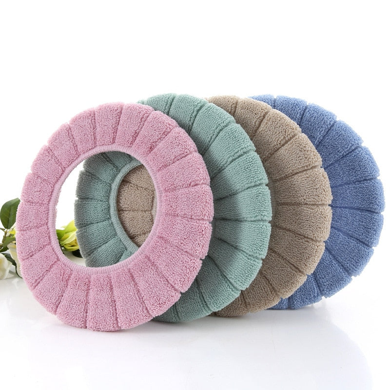 HULIANFU Winter Warm Toilet Seat Cover Closestool Mat 1Pcs Washable Bathroom Accessories Knitting Pure Color Soft O-shape Pad Toilet Seat