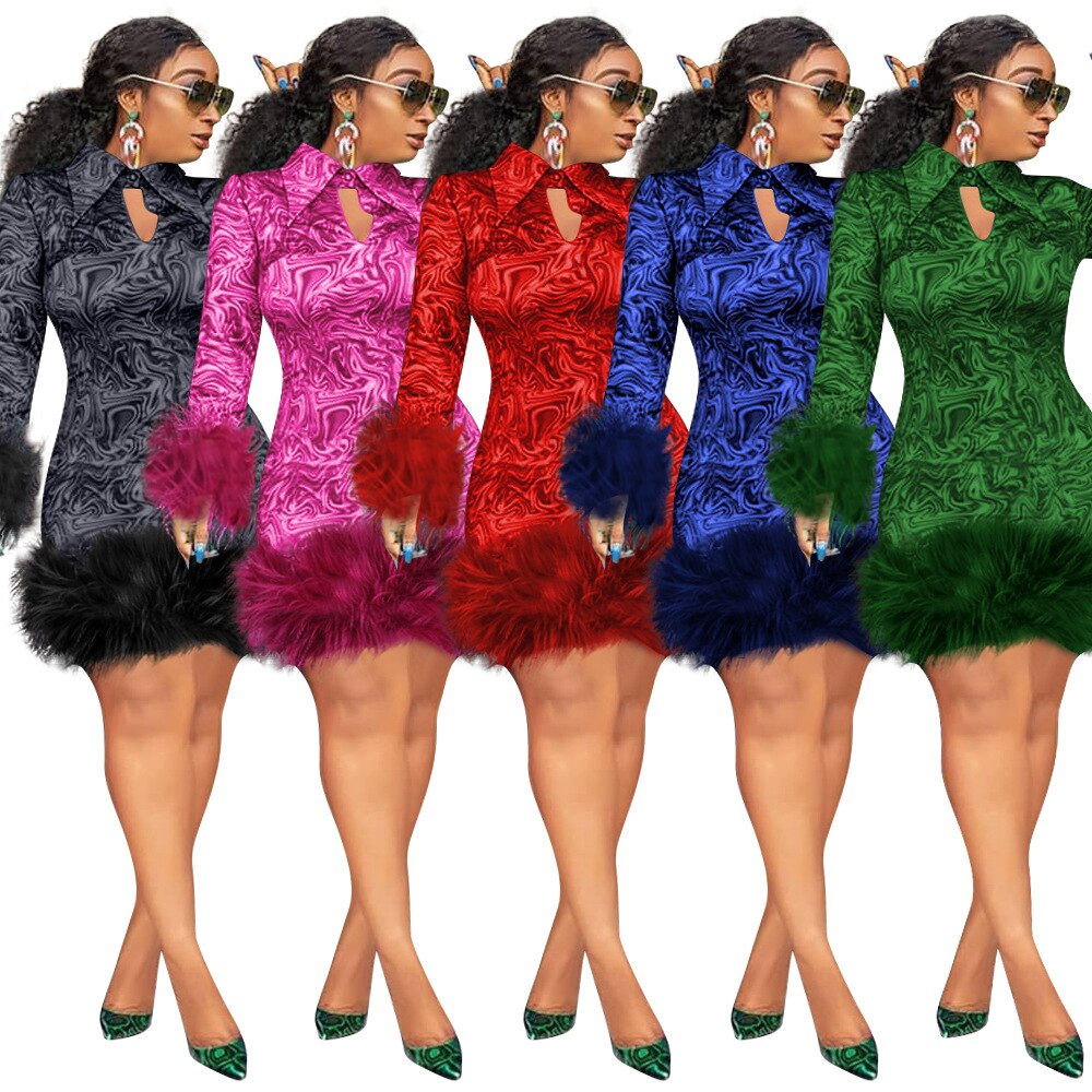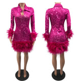 Woman Summer Dress African Print Feather Dress For Women Long Sleeve Evening Party Dress Plus Size 5XL European Clothing