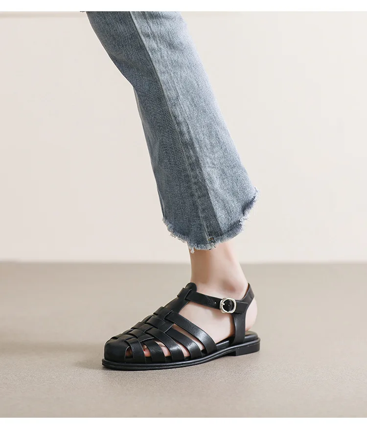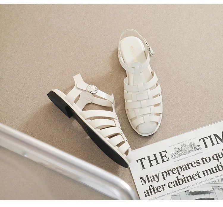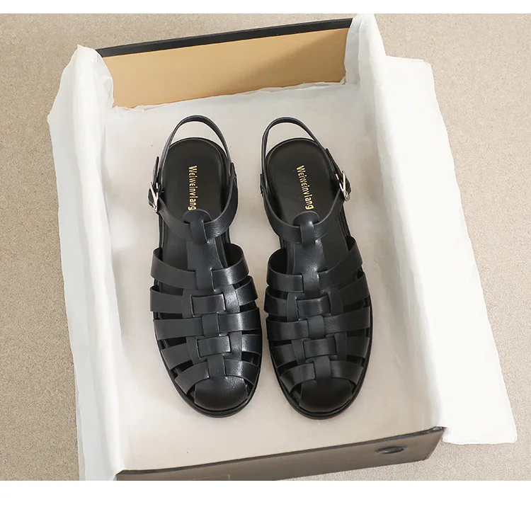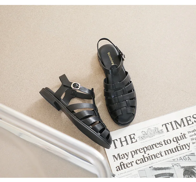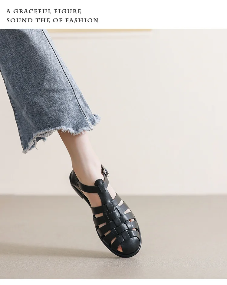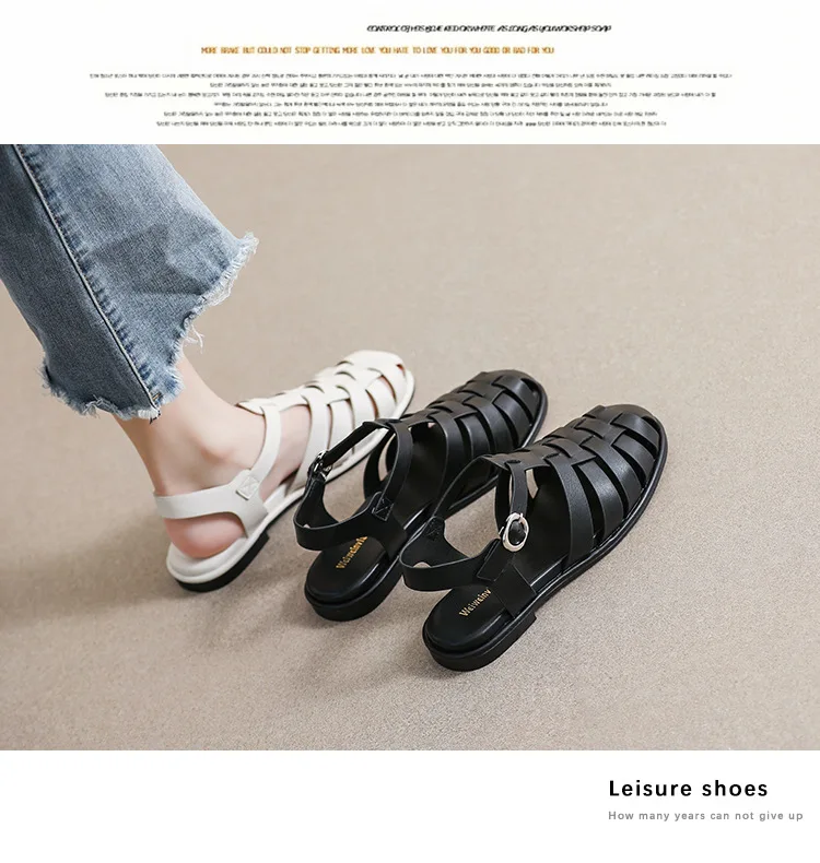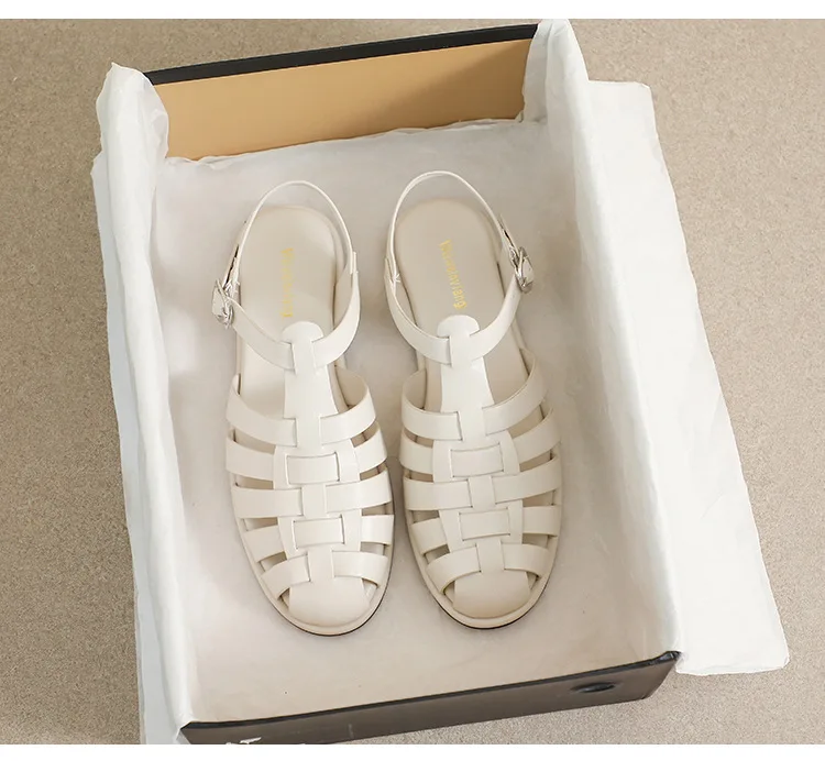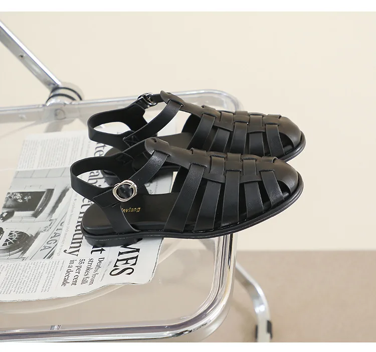 woman summer sandals Fashion weave design flat round toe casual shoes Outdoor outings and work Large size 41-43 free delivery