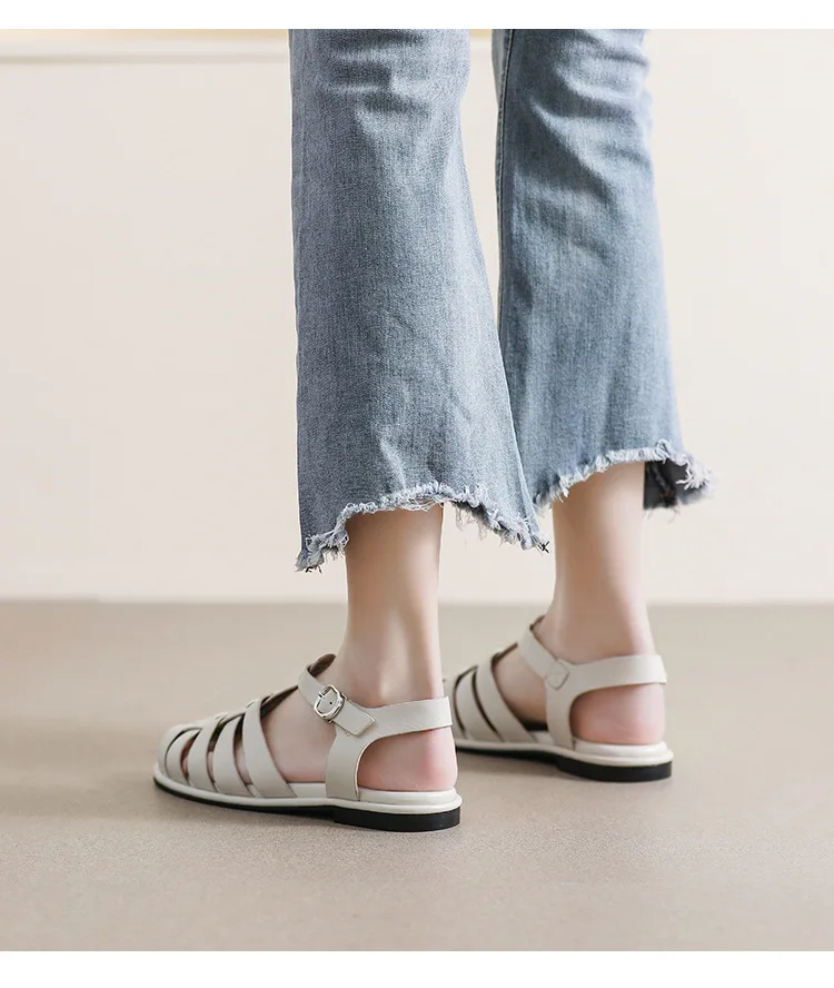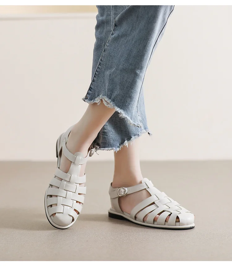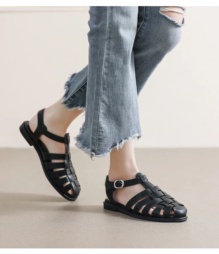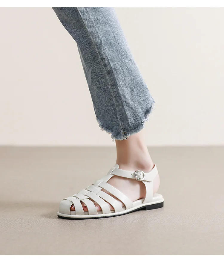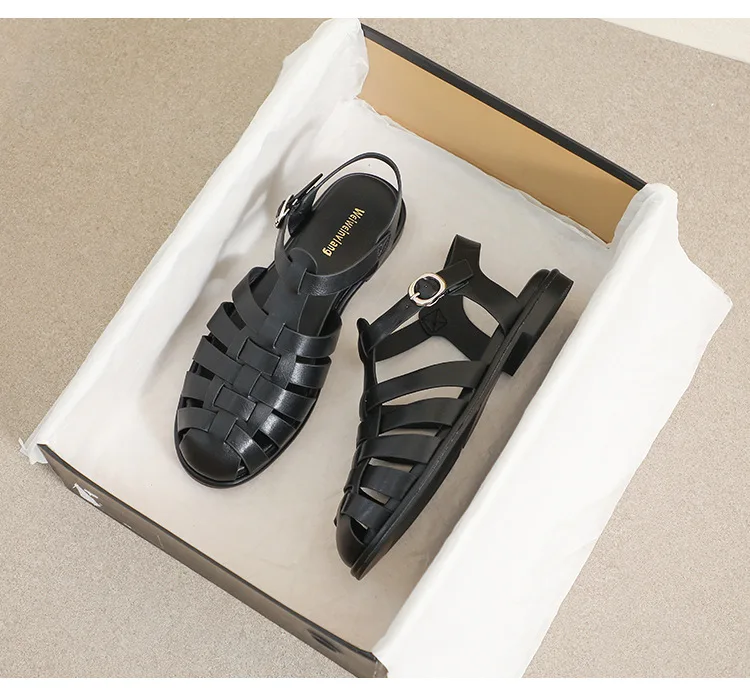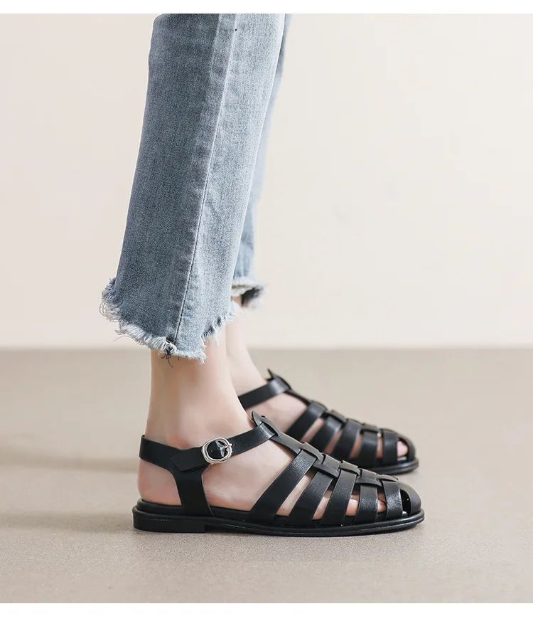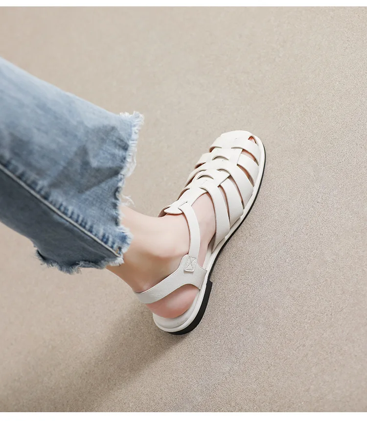 woman summer sandals Fashion weave design flat round toe casual shoes Outdoor outings and work Large size 41-43 free delivery