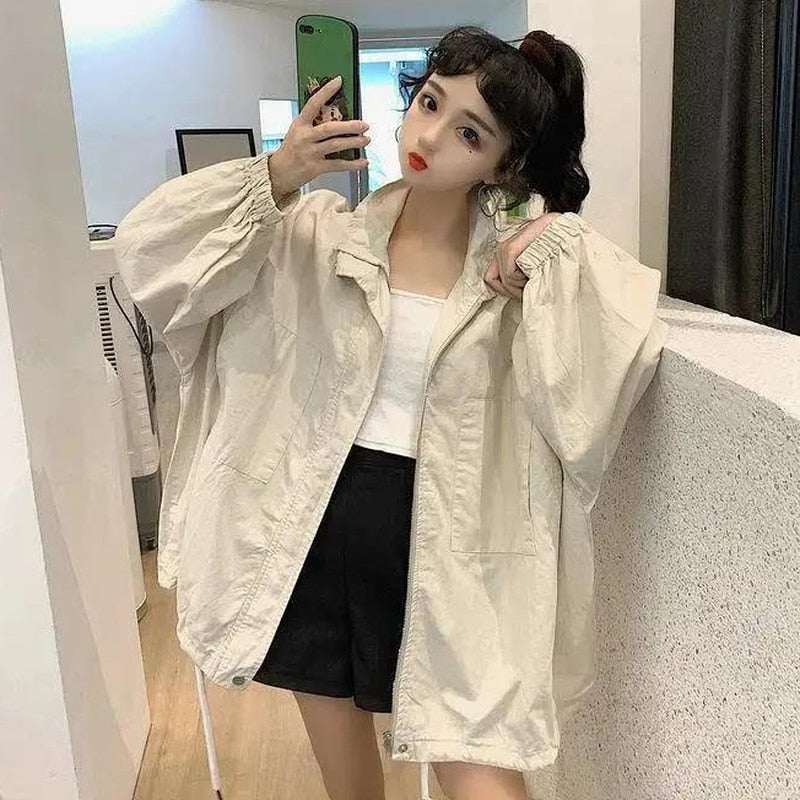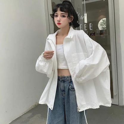 Women Basic Jackets Solid Turn-down Collar All-match Bf Harajuku Batwing Sleeve High Street Casual Teens Sun Protection Hot Sale