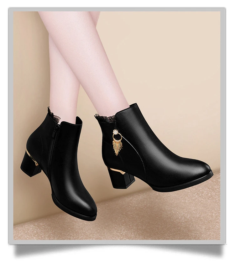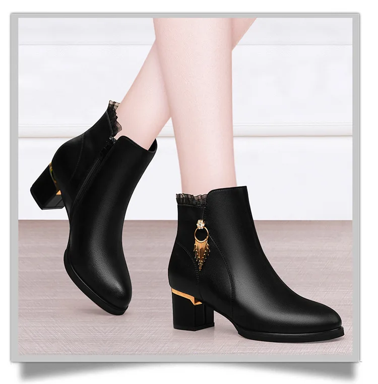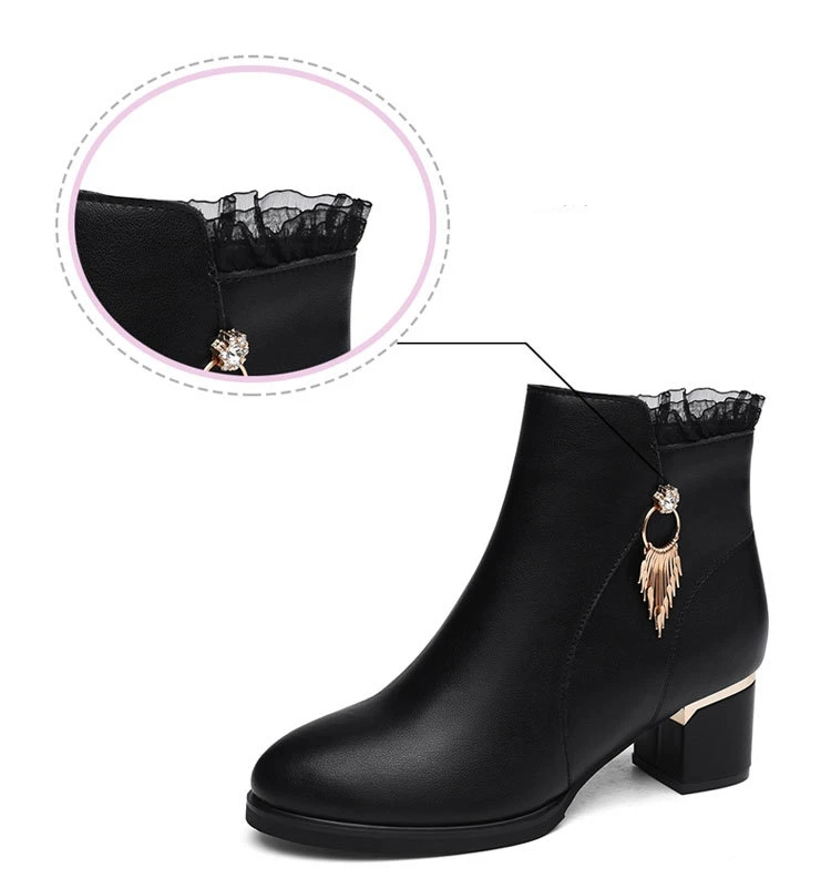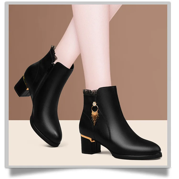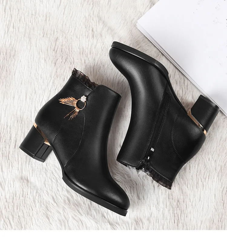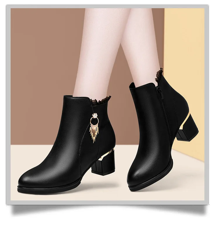 Women Genuine Sheepskin Leather Ankle Boots Casual Autumn Winter Thick High Heels New Chelsea Booties Shoes Korean Fashion M0124