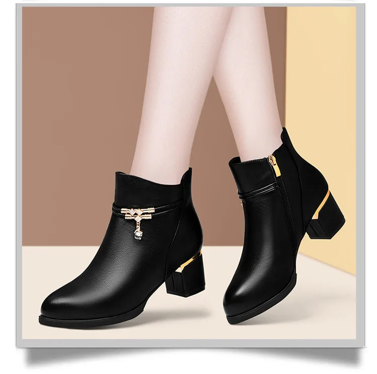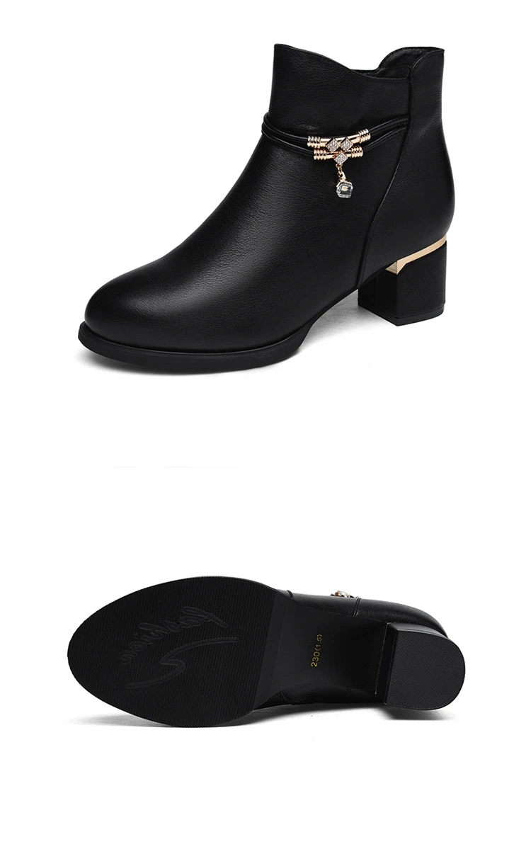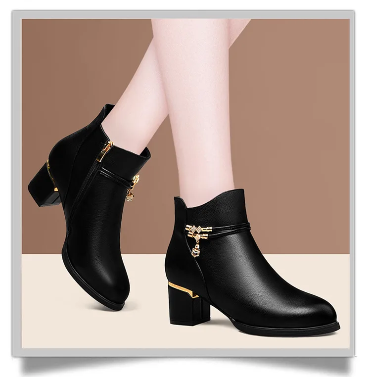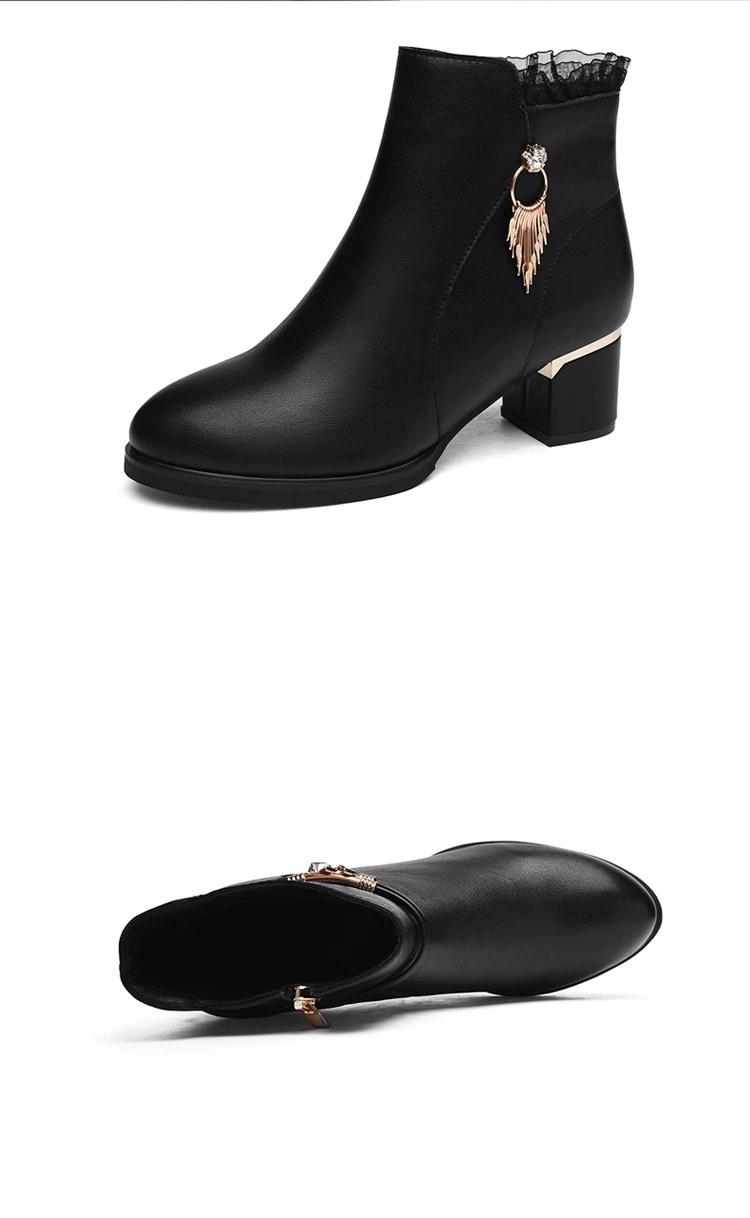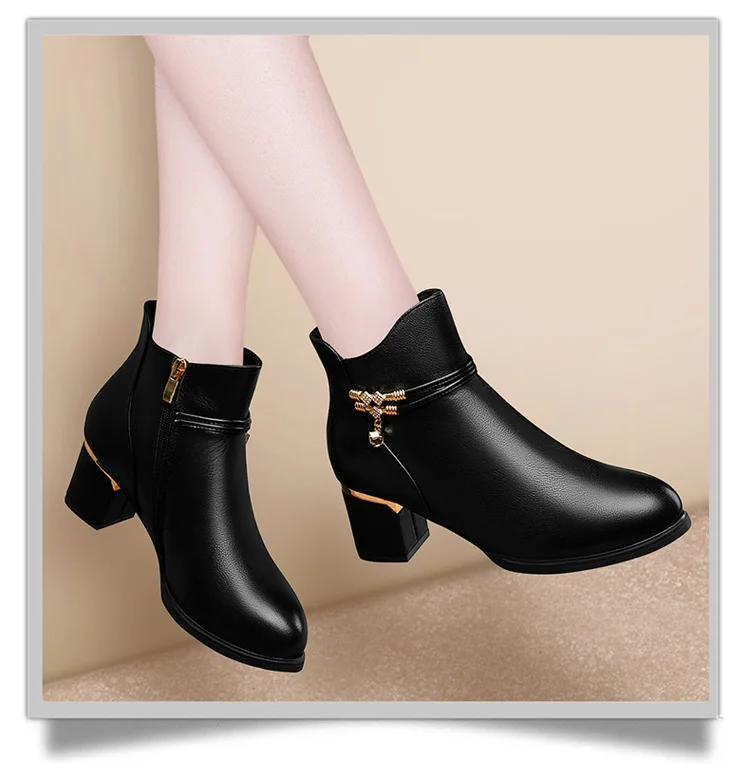 Women Shoes Sheepskin Leather Short Boots Casual Autumn Winter Boots New Thick Heel Boots Korean Style Fashion