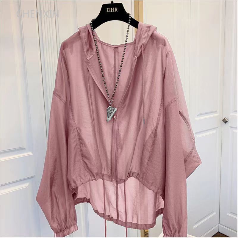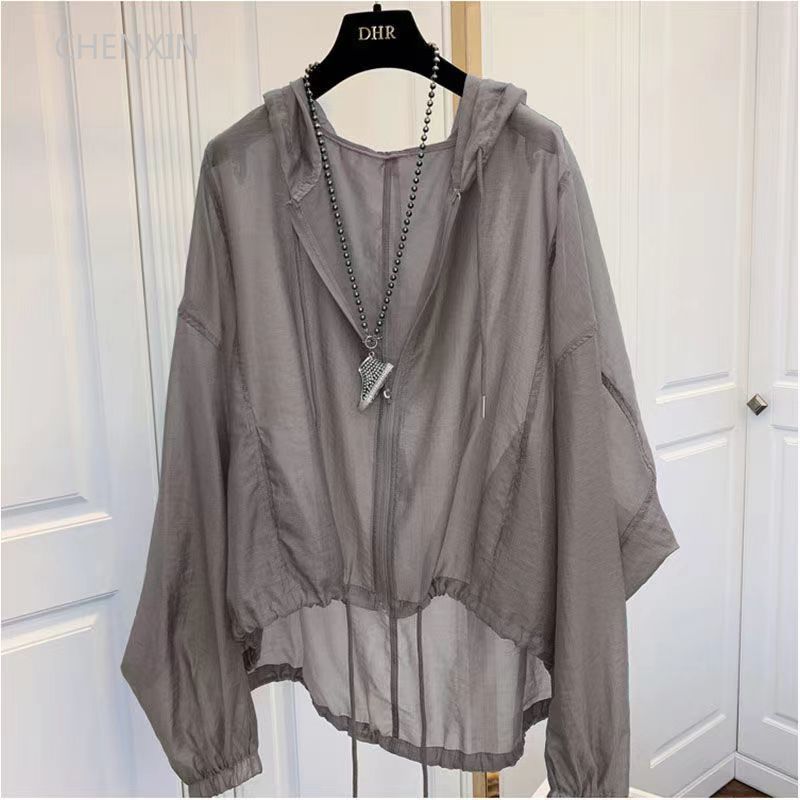 Women Jackets Hooded Summer Sun-proof Zipper Coats Thin Loose See Through Outerwear Breathable Outwear Lightweight Clothes Black