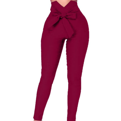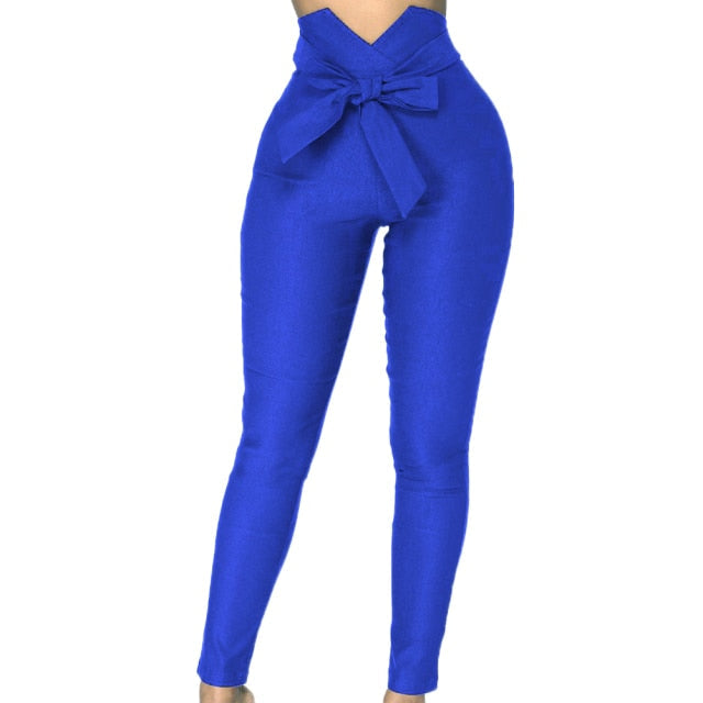 Hulianfu Women Pants Fashion Plaid Pleated High Waist Skinny Pencil Pants Trousers with Sash Slim Casual Fashion Outwear