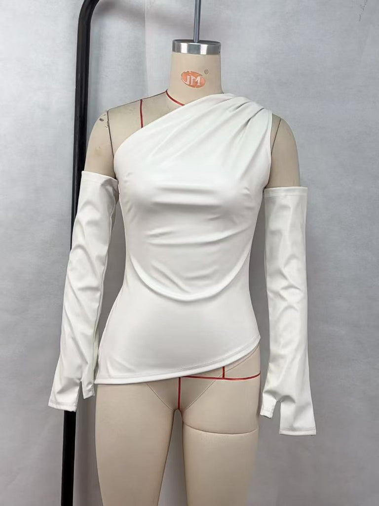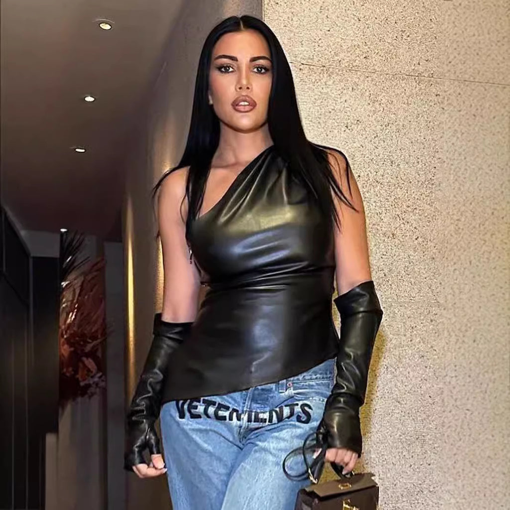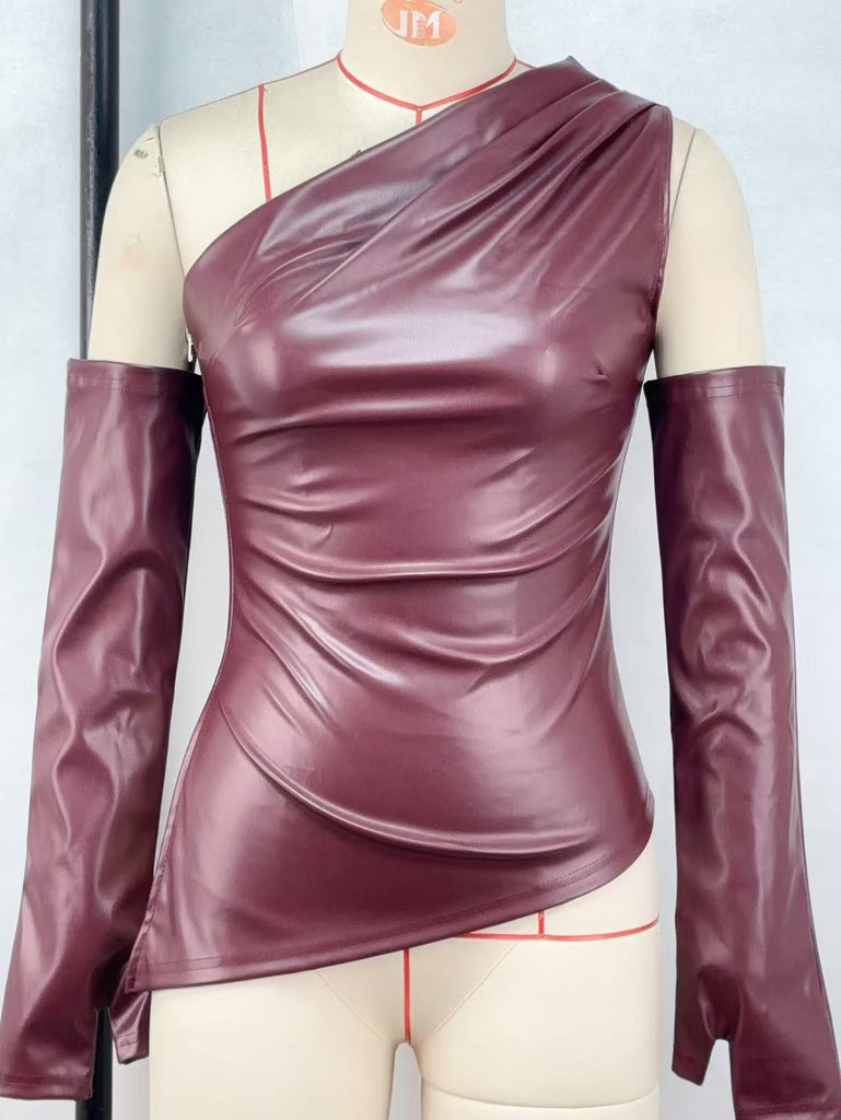 women's clothing popular autumn new street hipster sleeveless diagonal collar PU leather vest plus sleeve top women's suit