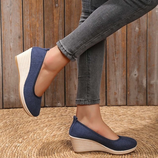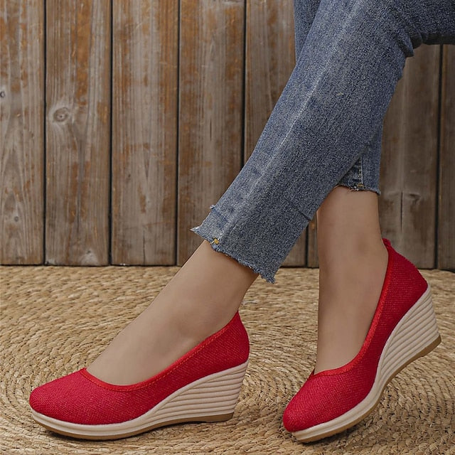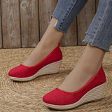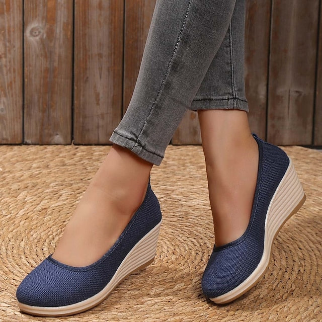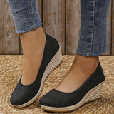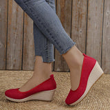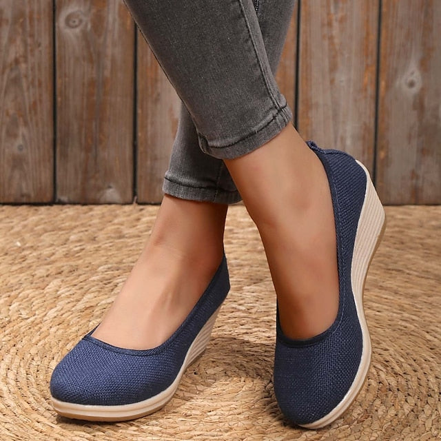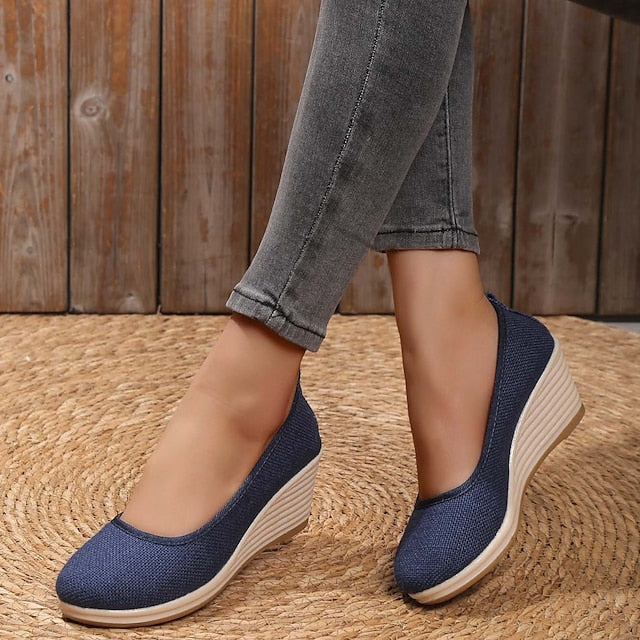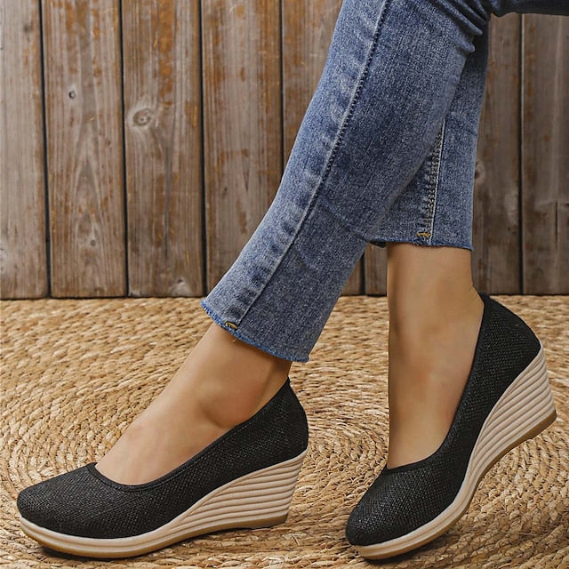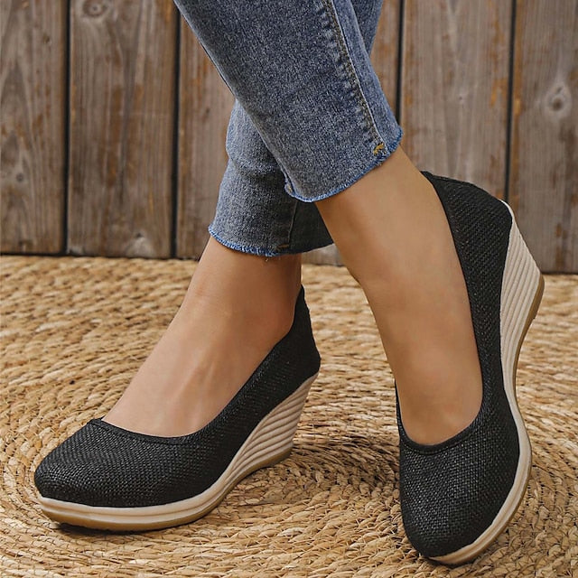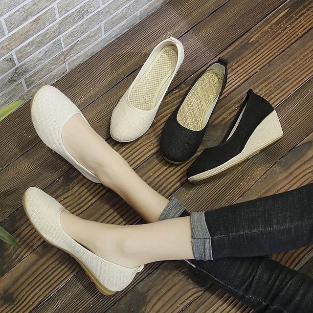 Gender:Women's,Category:Heels,Style:Minimalism,Elegant,Comfort,Casual,Occasion:Outdoor,Daily,Toe Shape:Round Toe,Upper Materials:Canvas,Outsole Materials:TPR,Heel Height(inch):1-2,Pattern:Solid Color,Season:Spring,Fall,Summer,Foot Length (cm):US5.5 / EU36 / UK3.5 / CN35:22.1-22.5;US6 / EU36 / UK4 / CN36:22.6-23.0;US6.5-7 / EU37 / UK4.5-5 / CN37:23.1-23.5;US7.5 / EU38 / UK5.5 / CN38:23.6-24.0;US8 / EU39 / UK6 / CN39:24.1-24.5;US8.5 / EU39 / UK6.5 / CN40:24.6-25.0;US9 / EU40 / UK7 / CN41:25.1-25.5;US9.5-10 / EU41 / UK7.5-8 / CN42:25.6-26.0,Foot Width (cm):US5.5 / EU36 / UK3.5 / CN35:8.3;US6 / EU36 / UK4 / CN36:8.5;US6.5-7 / EU37 / UK4.5-5 / CN37:8.7;US7.5 / EU38 / UK5.5 / CN38:8.9;US8 / EU39 / UK6 / CN39:9.1;US8.5 / EU39 / UK6.5 / CN40:9.3;US9 / EU40 / UK7 / CN41:9.4;US9.5-10 / EU41 / UK7.5-8 / CN42:9.5,Closure Type:Loafer, Trends:Height Increasing Shoes,Plus Size,Comfort Shoes,Espadrilles,Wedge Heels,Heel Type:Wedge Heel,