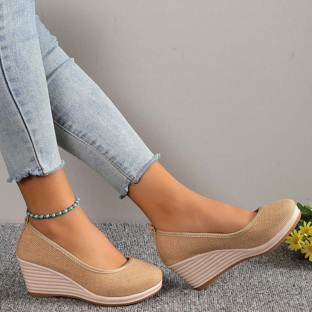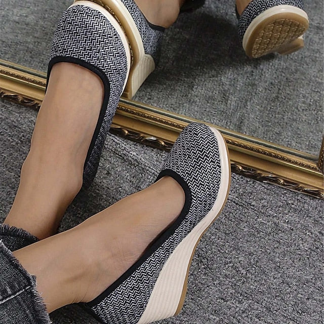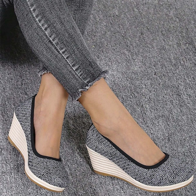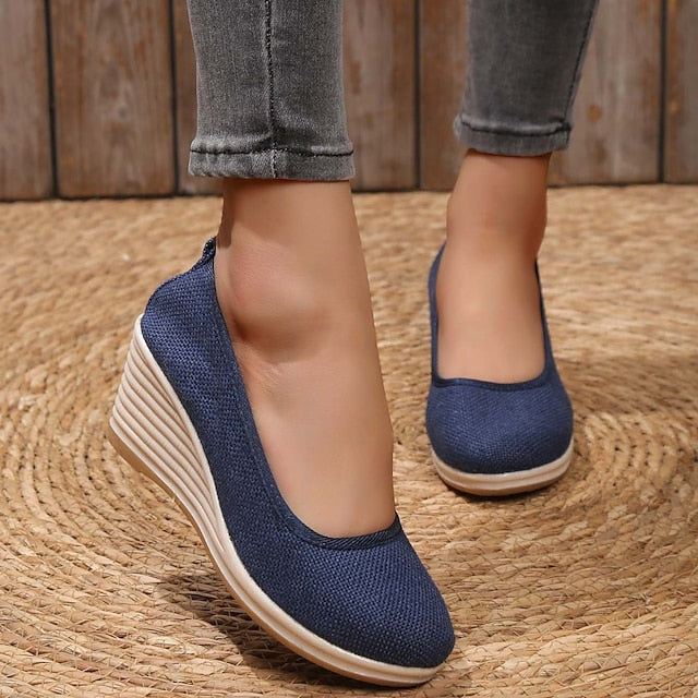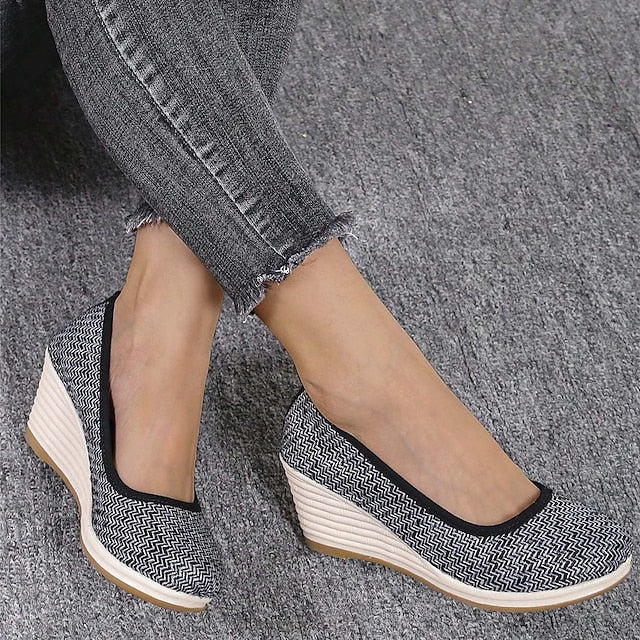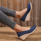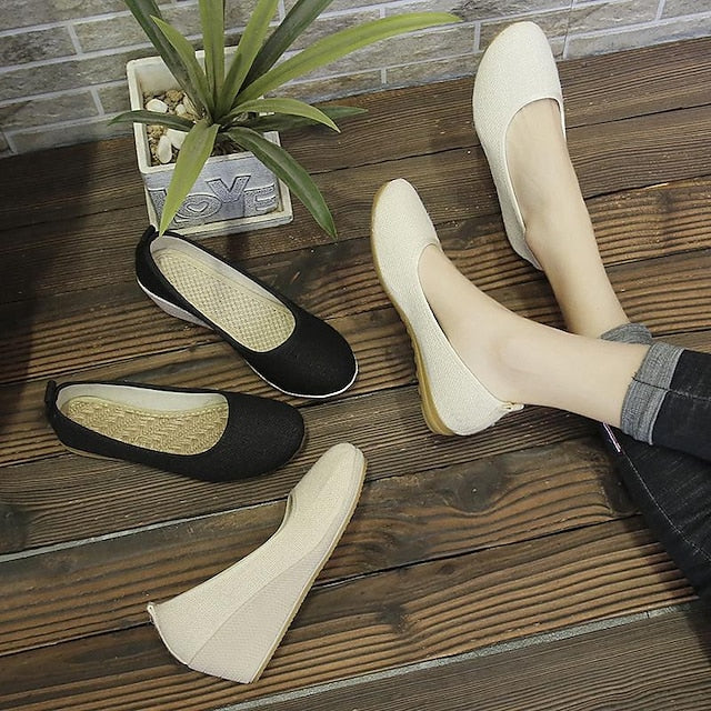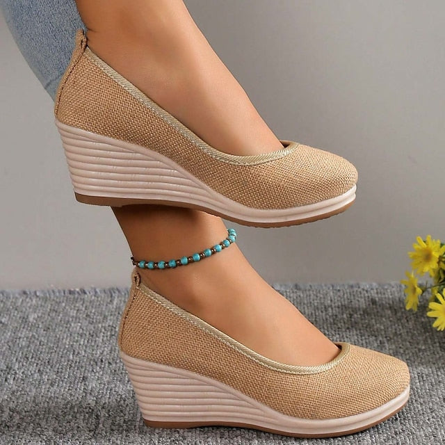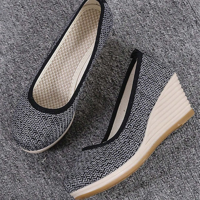 Gender:Women's,Category:Heels,Style:Minimalism,Elegant,Comfort,Casual,Occasion:Outdoor,Daily,Toe Shape:Round Toe,Upper Materials:Canvas,Outsole Materials:TPR,Heel Height(inch):1-2,Pattern:Solid Color,Season:Spring,Fall,Summer,Foot Length (cm):US5.5 / EU36 / UK3.5 / CN35:22.1-22.5;US6 / EU36 / UK4 / CN36:22.6-23.0;US6.5-7 / EU37 / UK4.5-5 / CN37:23.1-23.5;US7.5 / EU38 / UK5.5 / CN38:23.6-24.0;US8 / EU39 / UK6 / CN39:24.1-24.5;US8.5 / EU39 / UK6.5 / CN40:24.6-25.0;US9 / EU40 / UK7 / CN41:25.1-25.5;US9.5-10 / EU41 / UK7.5-8 / CN42:25.6-26.0,Foot Width (cm):US5.5 / EU36 / UK3.5 / CN35:8.3;US6 / EU36 / UK4 / CN36:8.5;US6.5-7 / EU37 / UK4.5-5 / CN37:8.7;US7.5 / EU38 / UK5.5 / CN38:8.9;US8 / EU39 / UK6 / CN39:9.1;US8.5 / EU39 / UK6.5 / CN40:9.3;US9 / EU40 / UK7 / CN41:9.4;US9.5-10 / EU41 / UK7.5-8 / CN42:9.5,Closure Type:Loafer, Trends:Height Increasing Shoes,Plus Size,Comfort Shoes,Espadrilles,Wedge Heels,Heel Type:Wedge Heel,