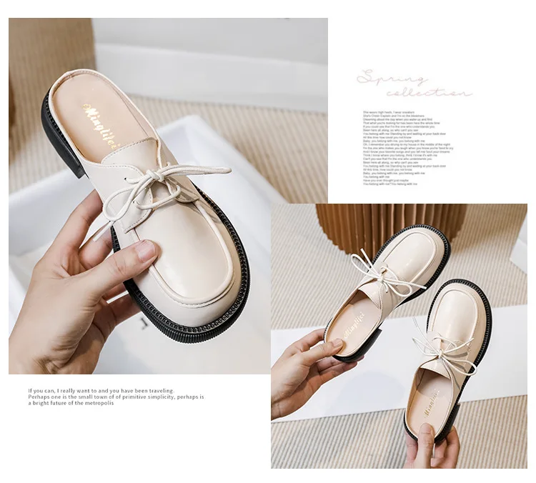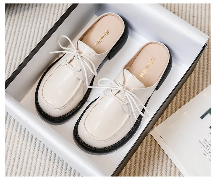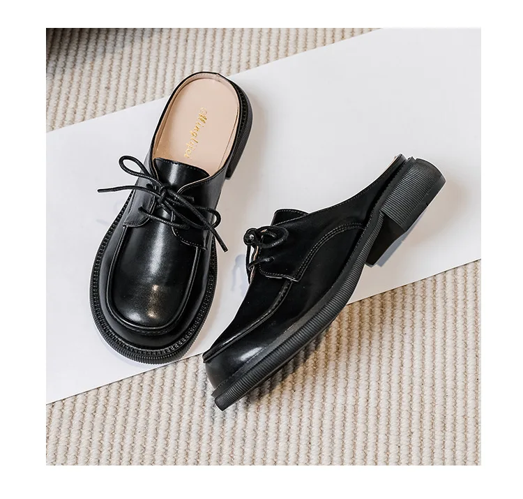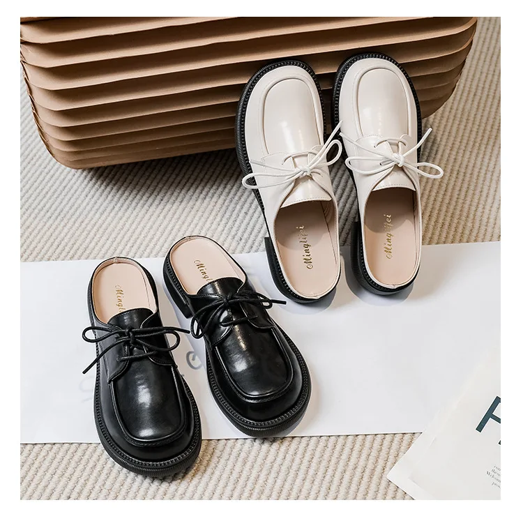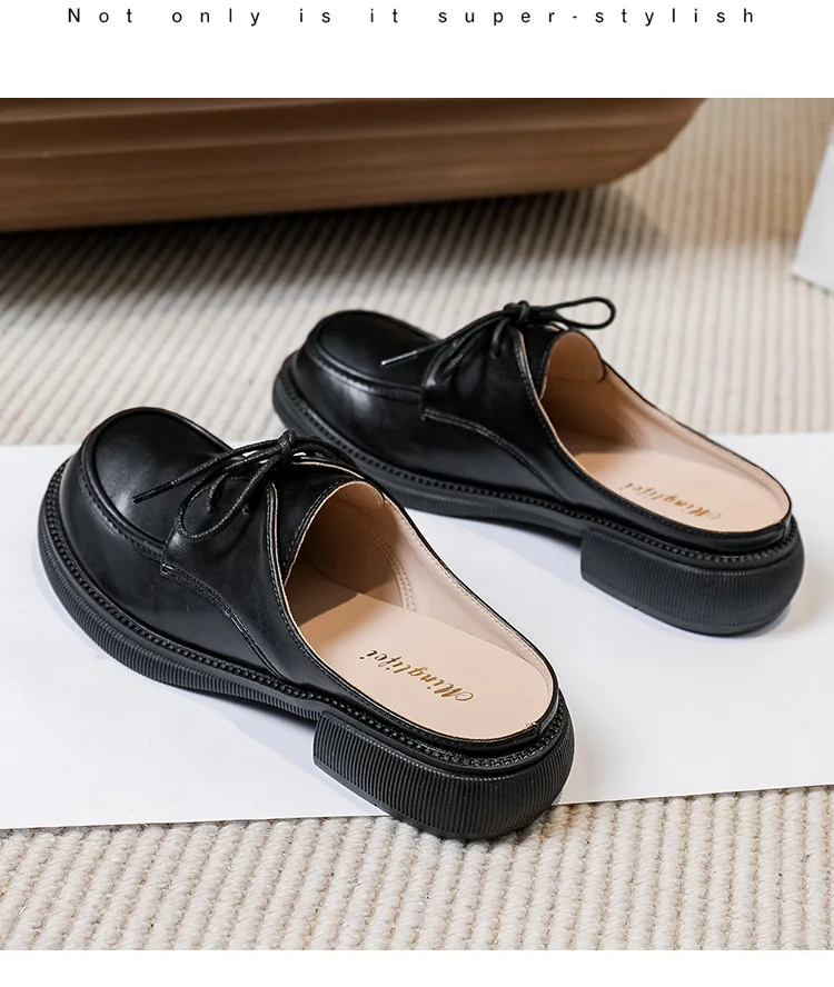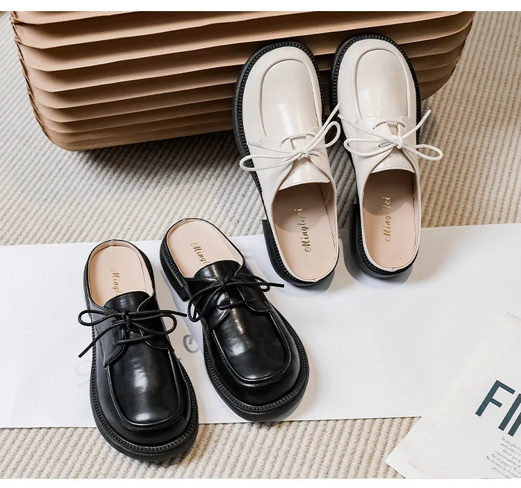 women's mules platform round toe lace-up shoes fashion brand design Office and outdoor wear high heel shoes Large size 41-43