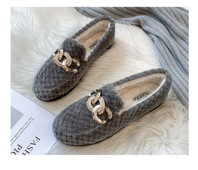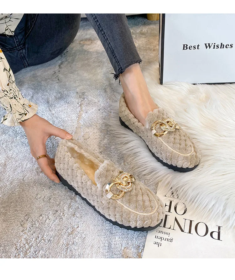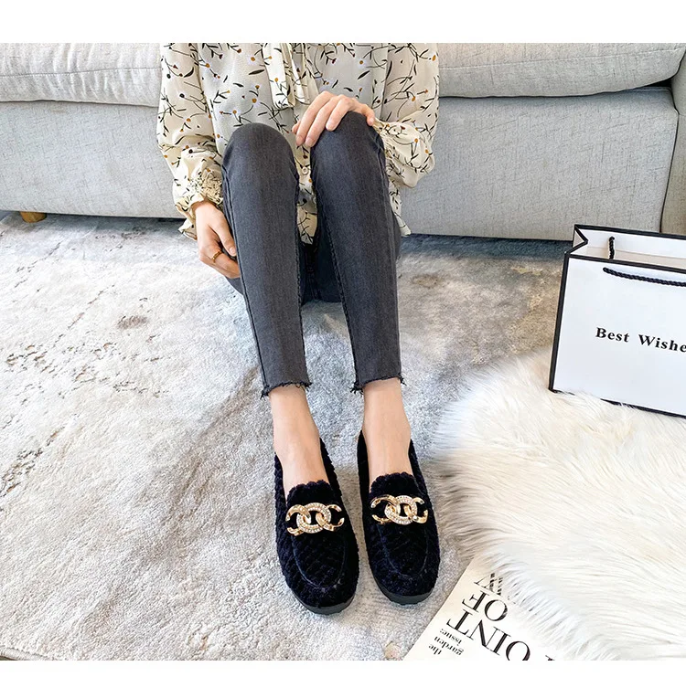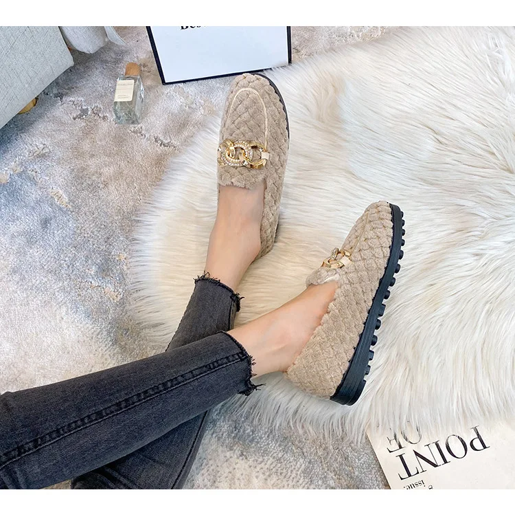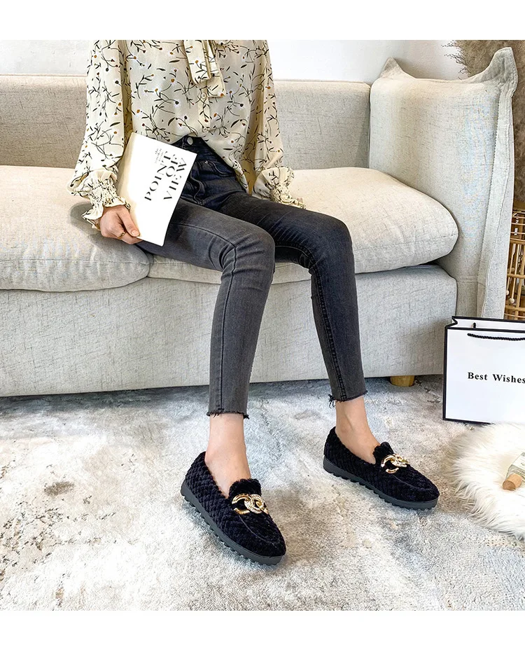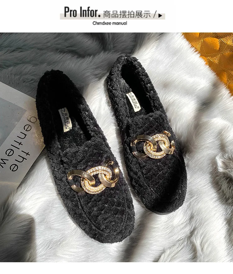 women's plush flat shoes Outdoor and office wear fashion chain design winter warm snow boots Large size 41-43 free delivery
