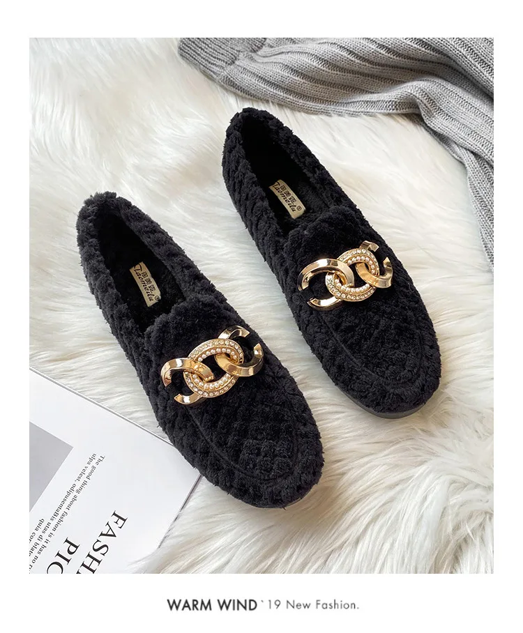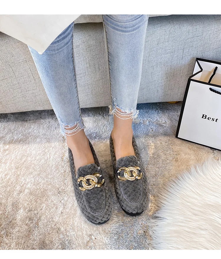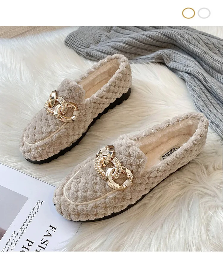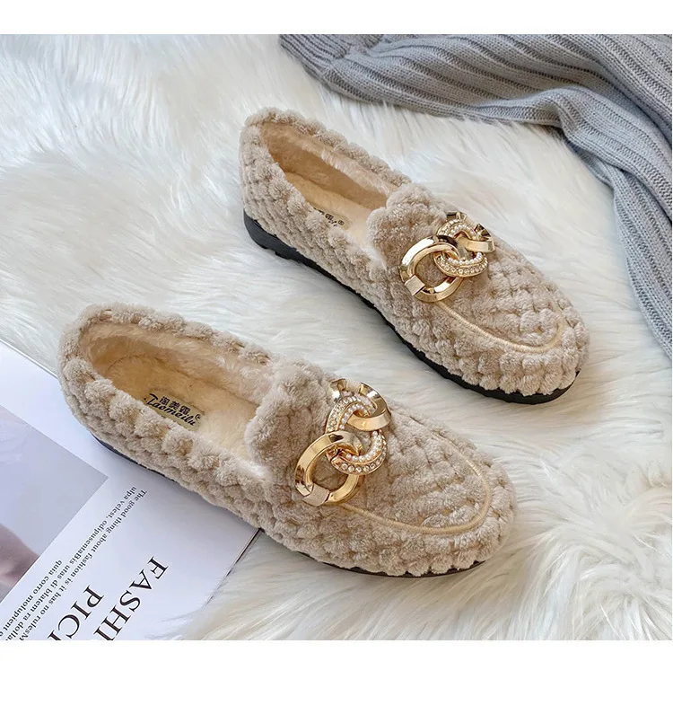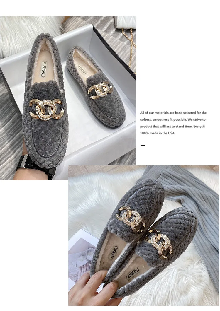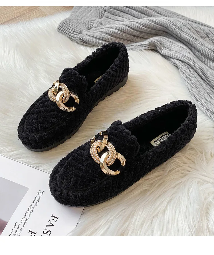 women's plush flat shoes Outdoor and office wear fashion chain design winter warm snow boots Large size 41-43 free delivery