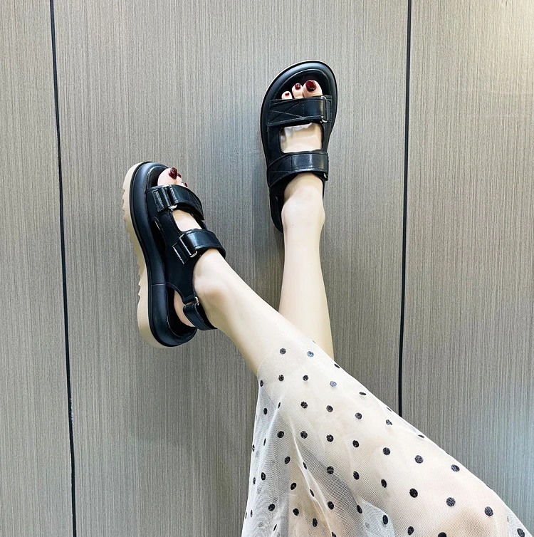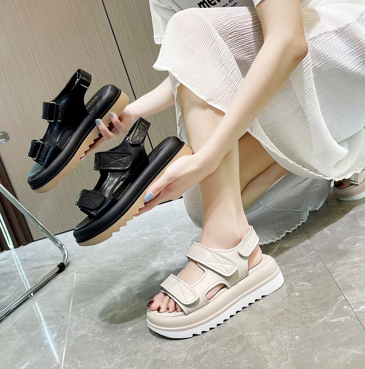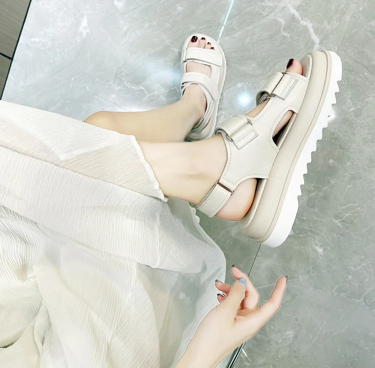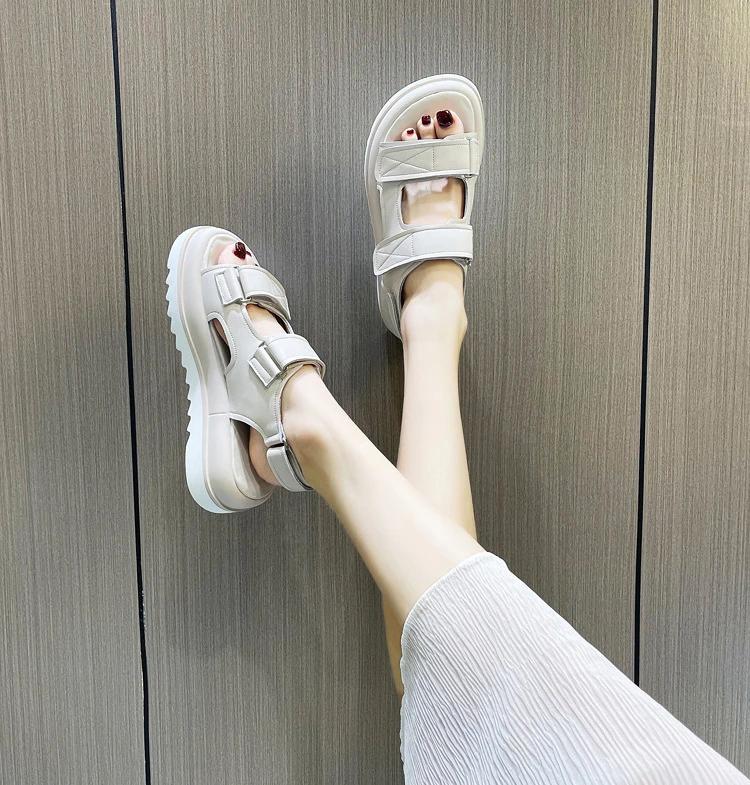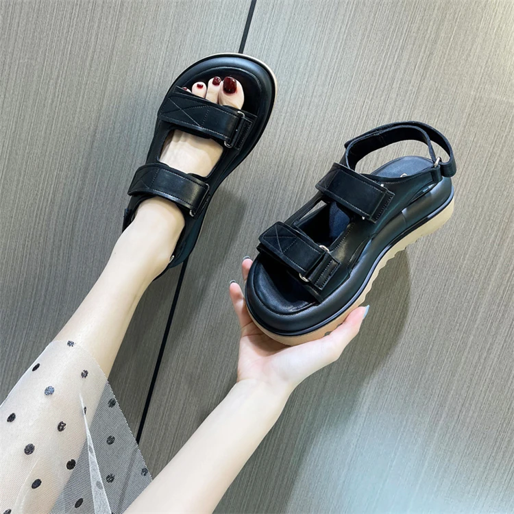 Women's Sandals Genuine Leather Summer Shoes For Women New Open Toe Sports Platform Sandals Fashion Female Beach Flat