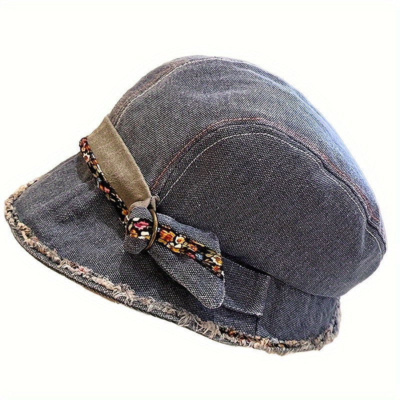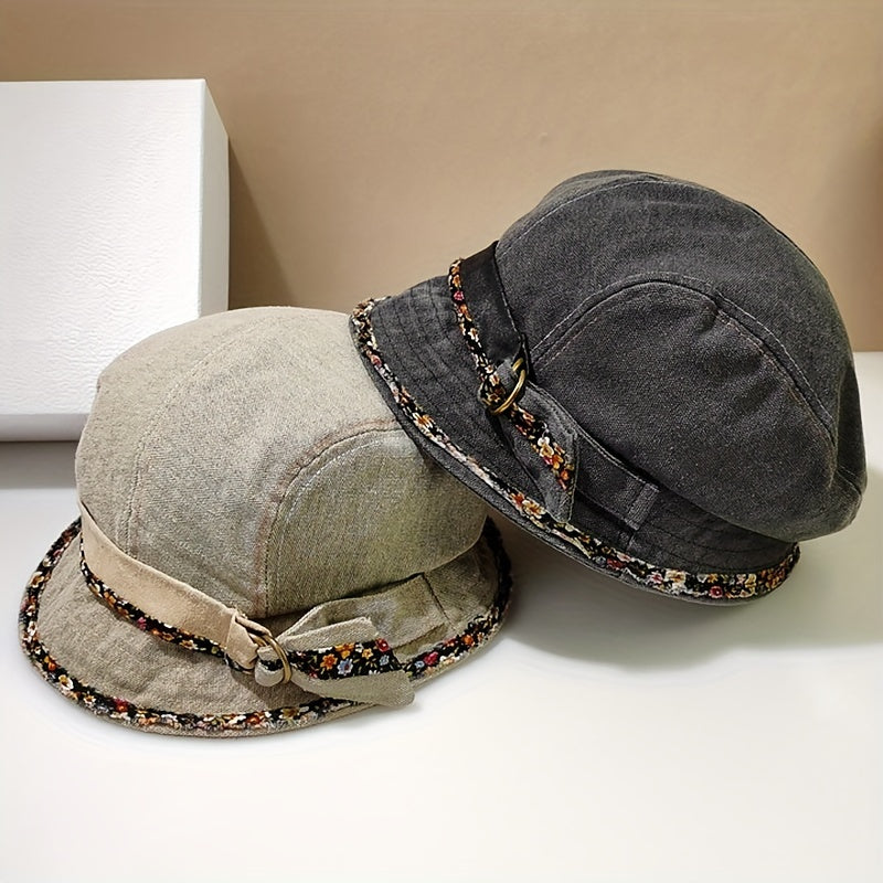 Womens Vintage-Inspired Lightweight Cotton Breton Cap - Artistic College Style Bucket Hat with Woven Craftsmanship and Lace Pattern - Perfect for Holiday and Everyday Wear