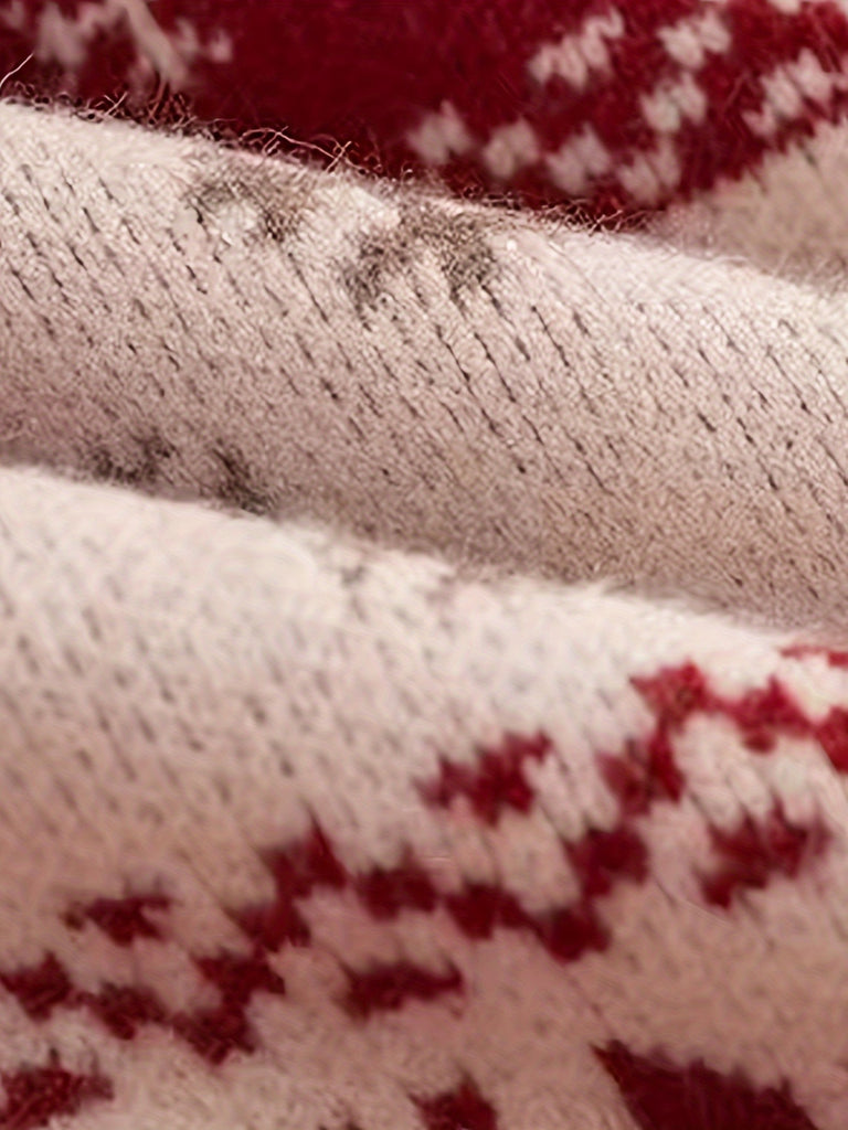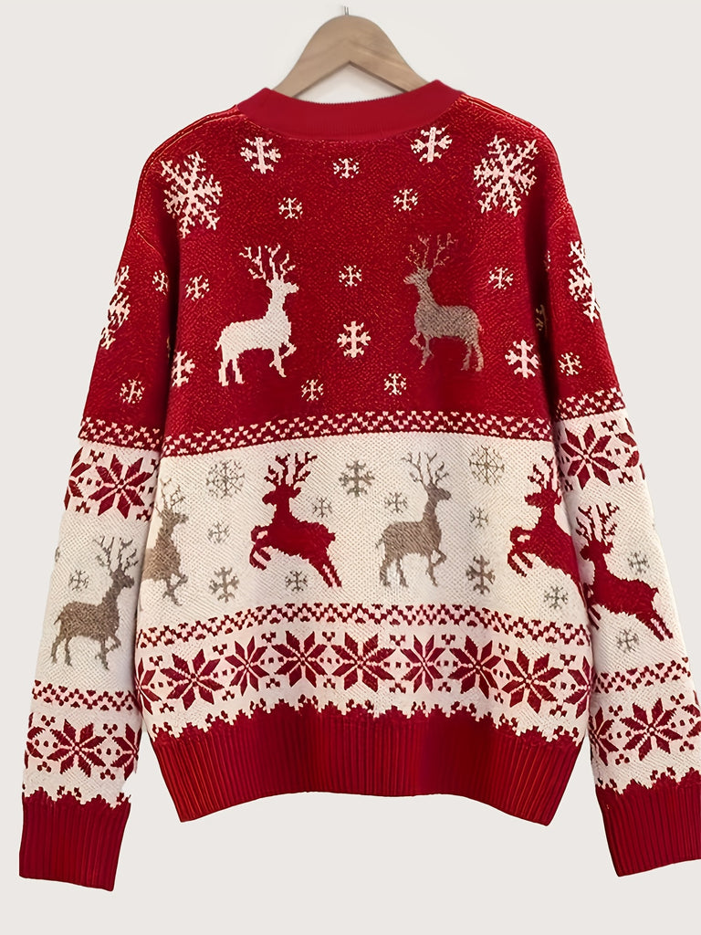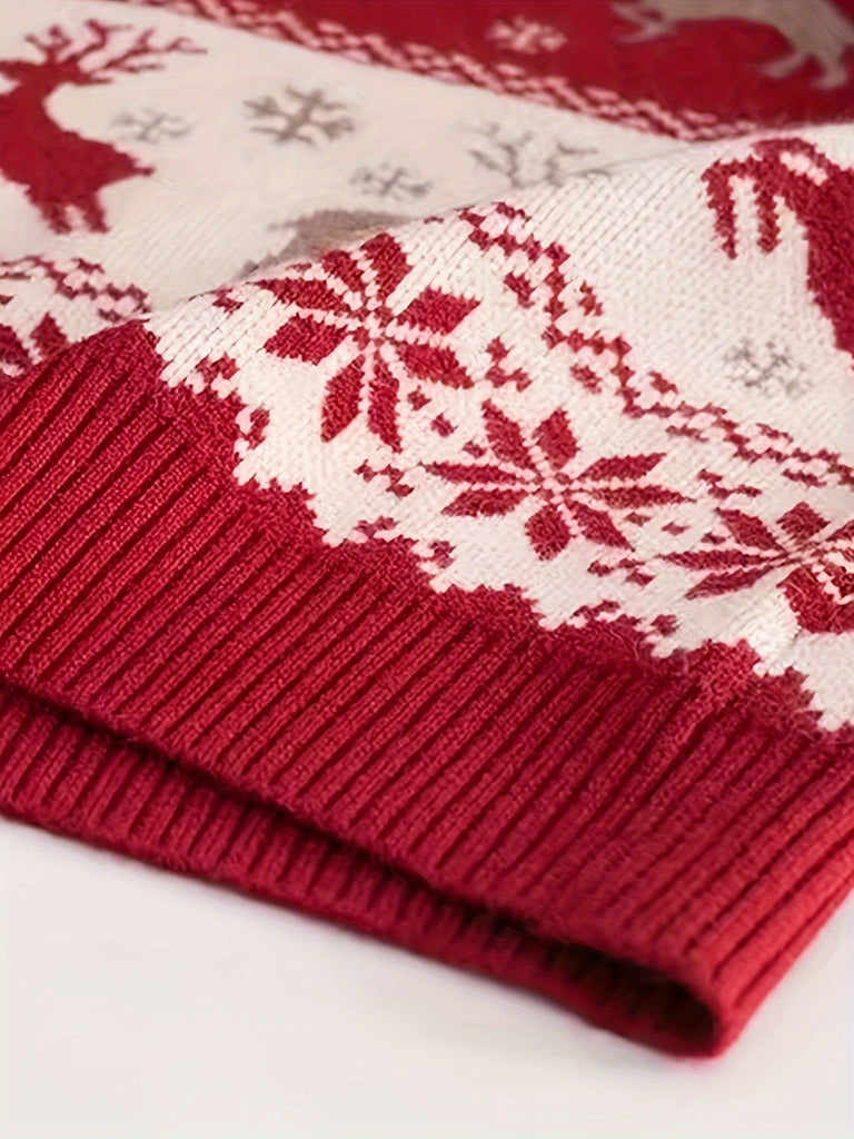 Yuletide Fashion, Elegant Red Christmas Knit Sweater for Women - Casual & Chic, Long Sleeve, Round Neck Pullover Top