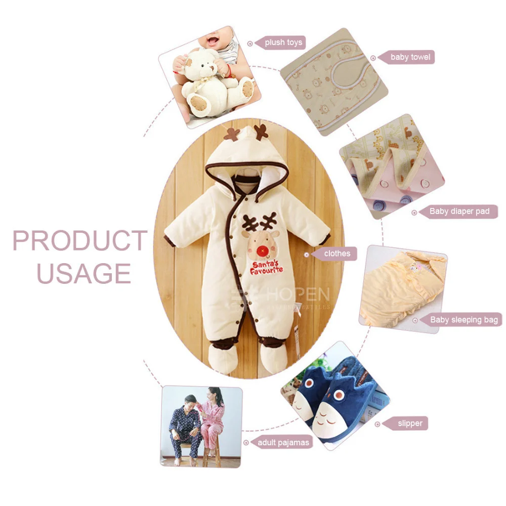 baby sleeping bag ,slipper , baby diaper pad.and also can make for adult pajamas ,